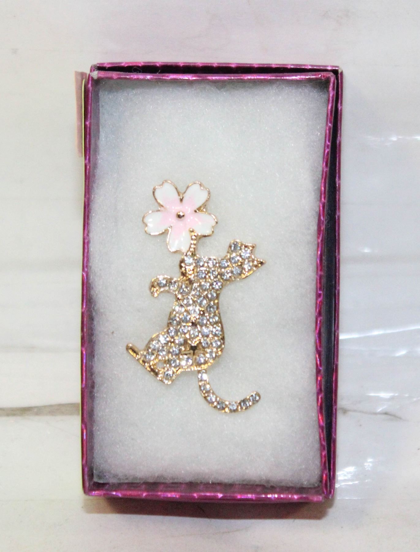 NEW CAT BROOCH PINK FLORAL ACCENT