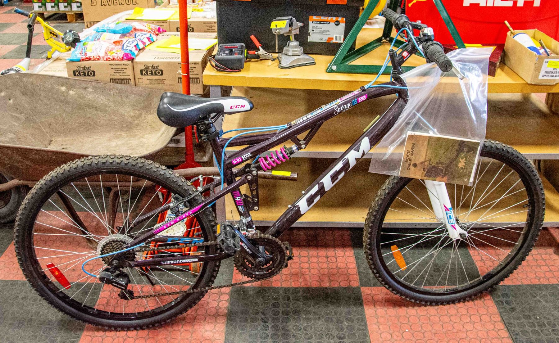 DRIVE TRAIN MOUNTAIN BICYCLE WITH MICROSHIFT GRIP SHIFTERS, 26" ALUMINUM WHEELS, SHIMANO REAR DERAILLEUR, FRONT AND REAR V-BRAKES, FEATURES DUAL SUSPENSION FORK. INCLUDES MANUAL. ORIGINAL PURCHASE PRICE $300.00ALL ITEMS MUST BE REMOVED WITHIN 5 DAYS OF SALE
