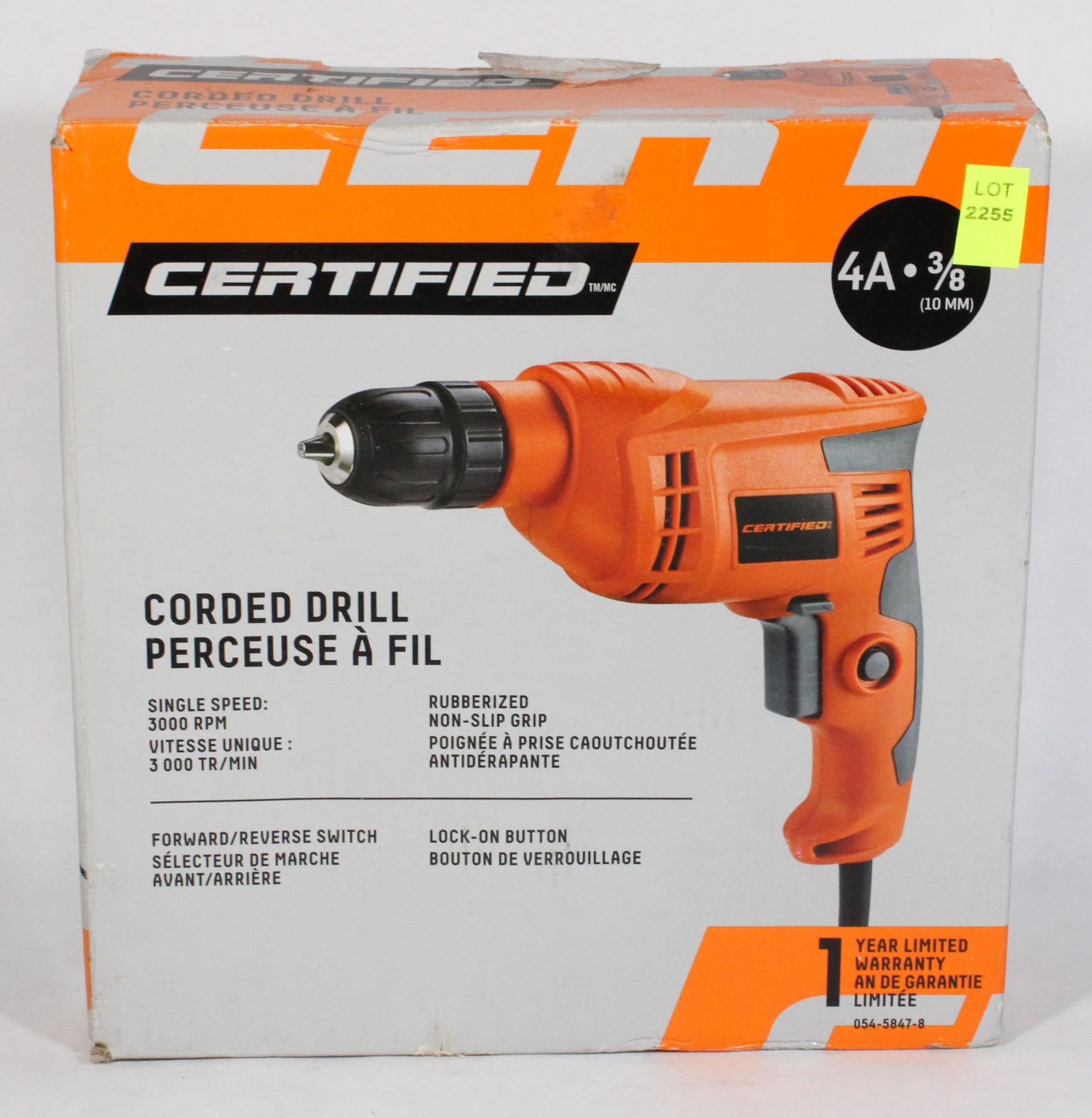 NEW CERTIFIED 4A 3/8 3000 RPM CORDED DRILL