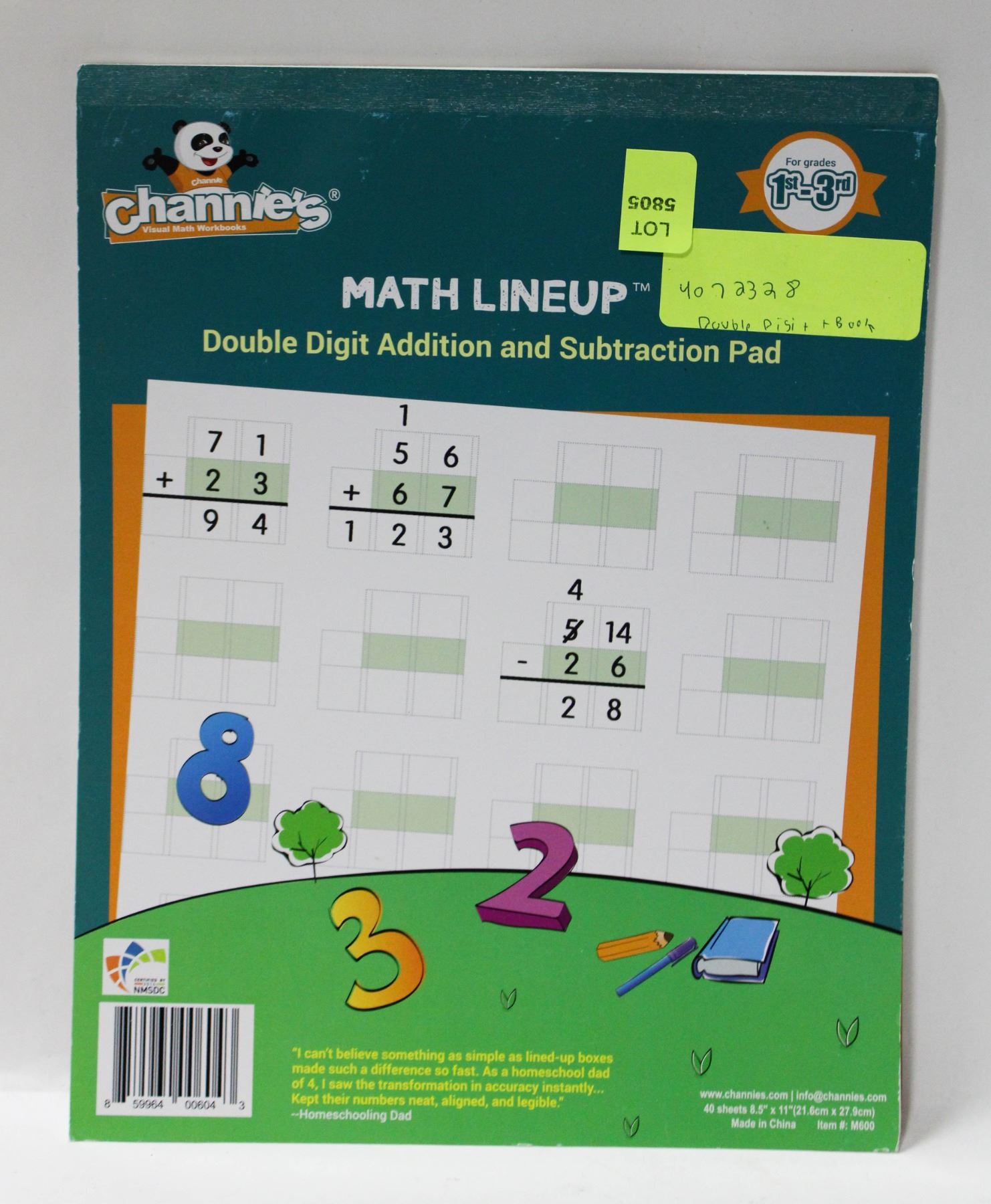NEW CHANNIES MATH LINEUP DOUBLE DIGIT + & - BOOK