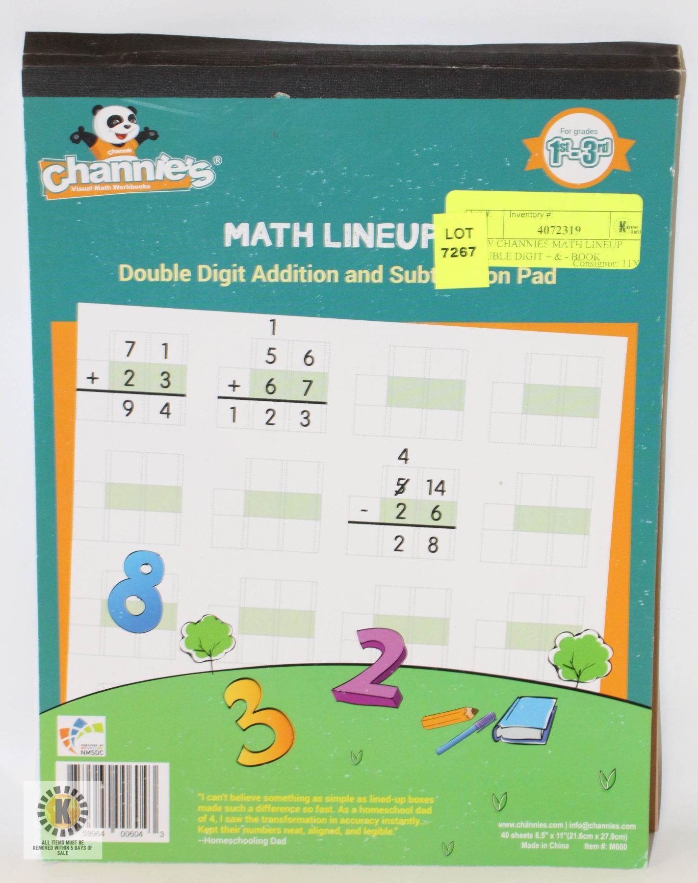 NEW CHANNIES MATH LINEUP DOUBLE DIGIT + & - BOOK