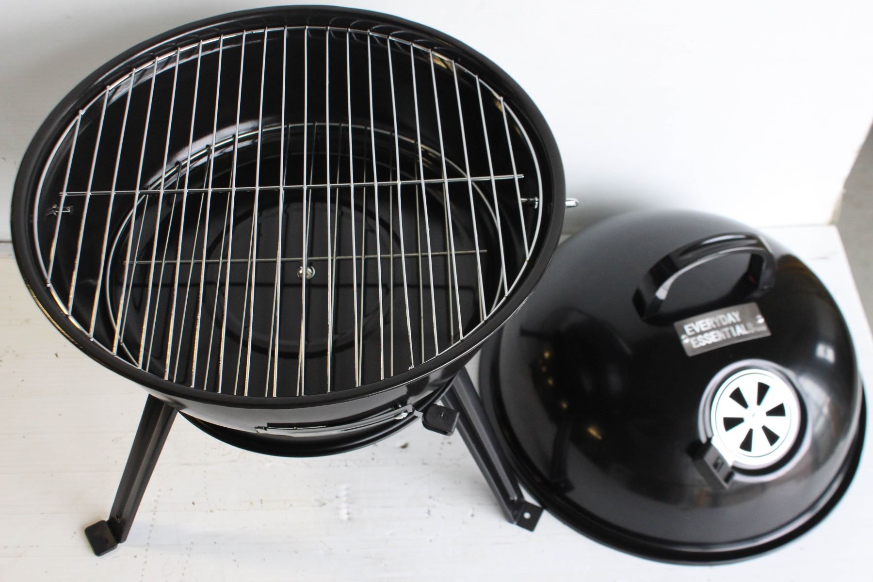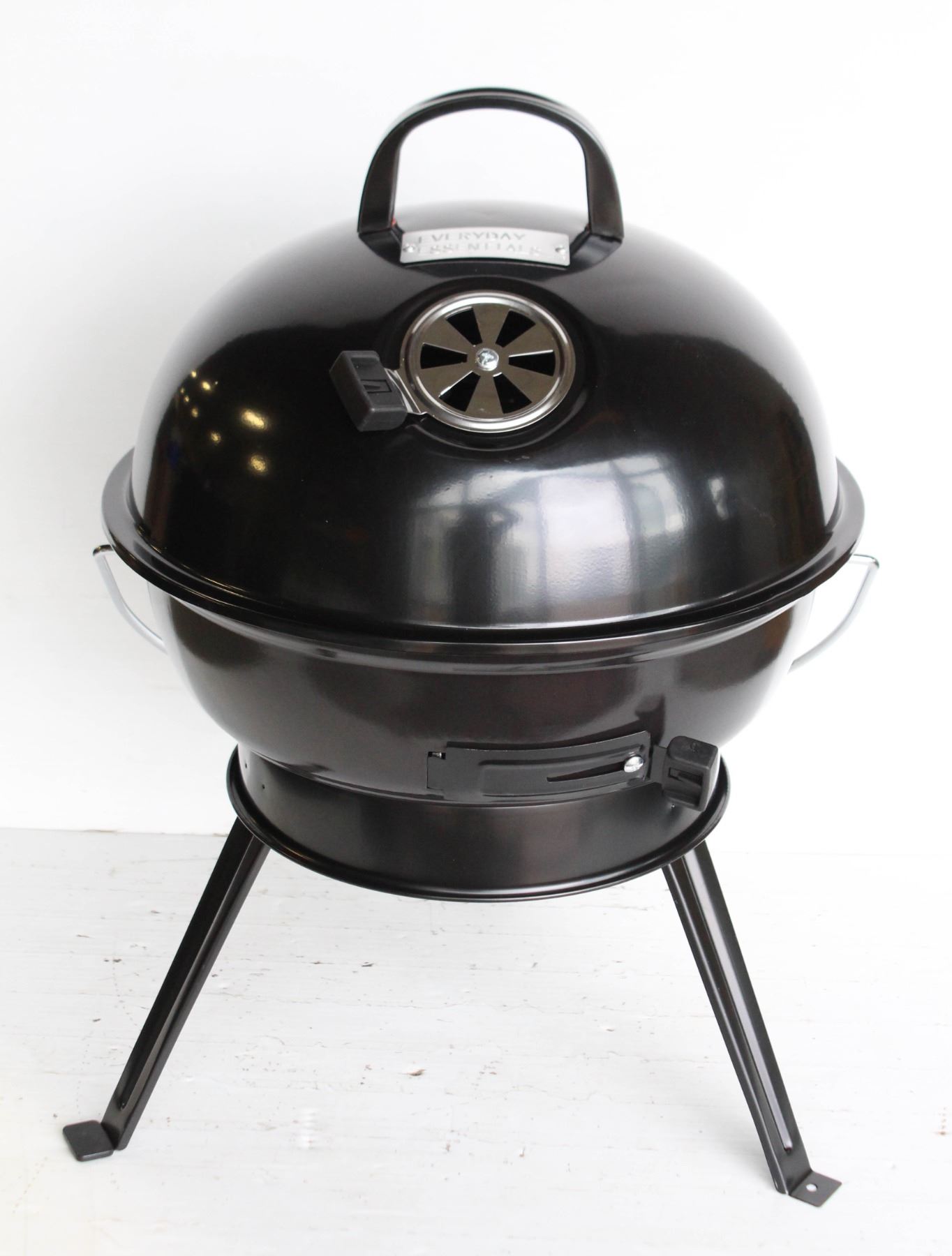 POWDER-COATED STEEL LID, ADJUSTABLE AIR VENT, LOCKING LID & FOLDING LEGS. GOOD WITH LUMP CHARCOAL, PELLETS OR WOOD CHIPS. 15.7" X 15.7" X 20.5"