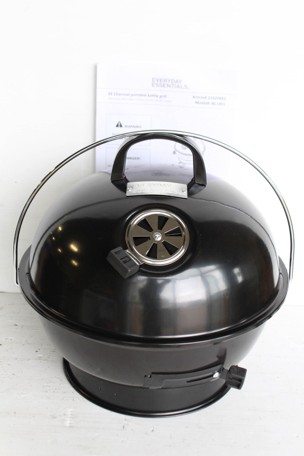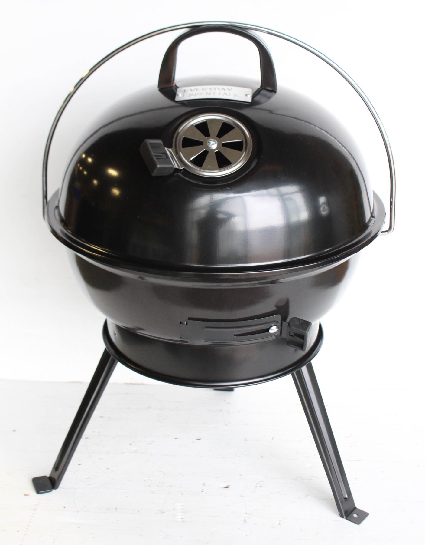 POWDER-COATED STEEL LID, ADJUSTABLE AIR VENT, LOCKING LID & FOLDING LEGS. GOOD WITH LUMP CHARCOAL, PELLETS OR WOOD CHIPS. 15.7" X 15.7" X 20.5"