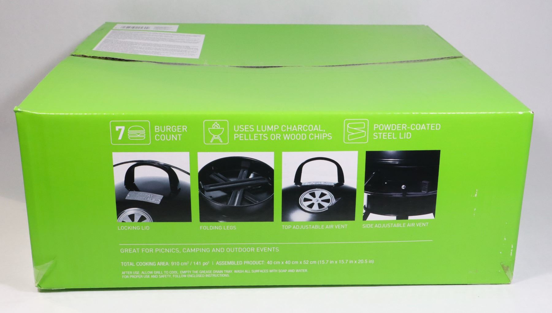 POWDER COATED STEEL LID, 7 BURGER COUNT, USES LUMP CHARCOAL PELLETS OR WOOD CHIPS***ITEM(S) LOCATED IN LETHBRIDGE ALBERTA. SMALL ITEMS ONLY ARE AVAILABLE FOR FREE TRANSPORT TO EDMONTON OFFICE (READ AUCTION DETAILS FOR MORE INFORMATION)