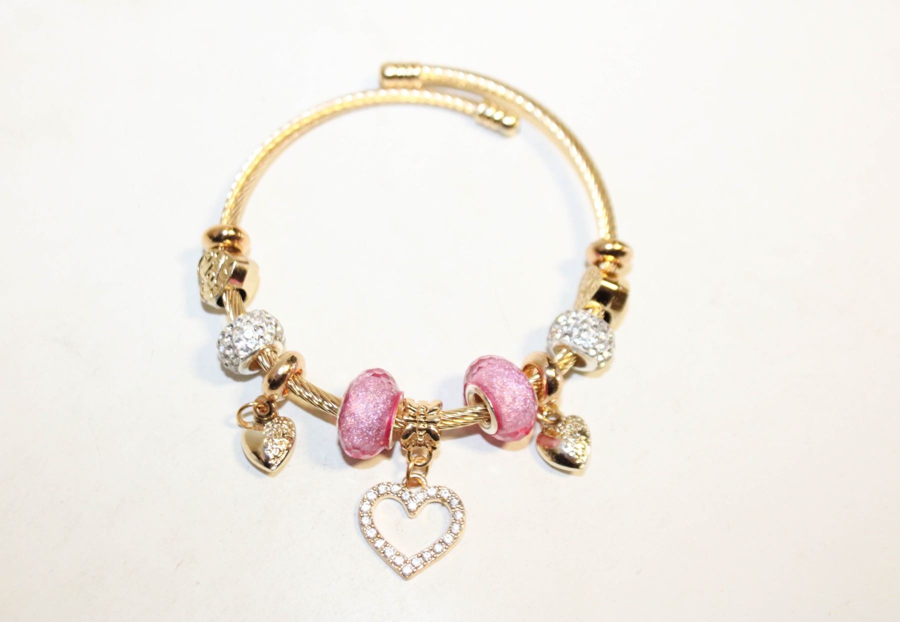 NEW CHARM HEART PINK, GOLDTONE, RHINESTONES