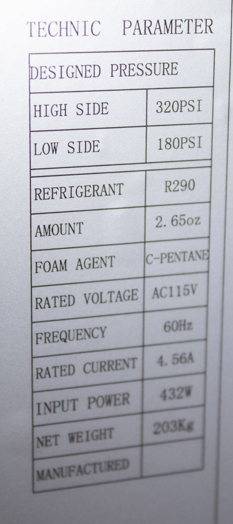 MODEL # ND-CFD-2RR-E-HC, AC 115 VOLTS, 60 HZ, 4.56 AMPS, 432 WATTS, 203KG, 54" X 32" X 83"