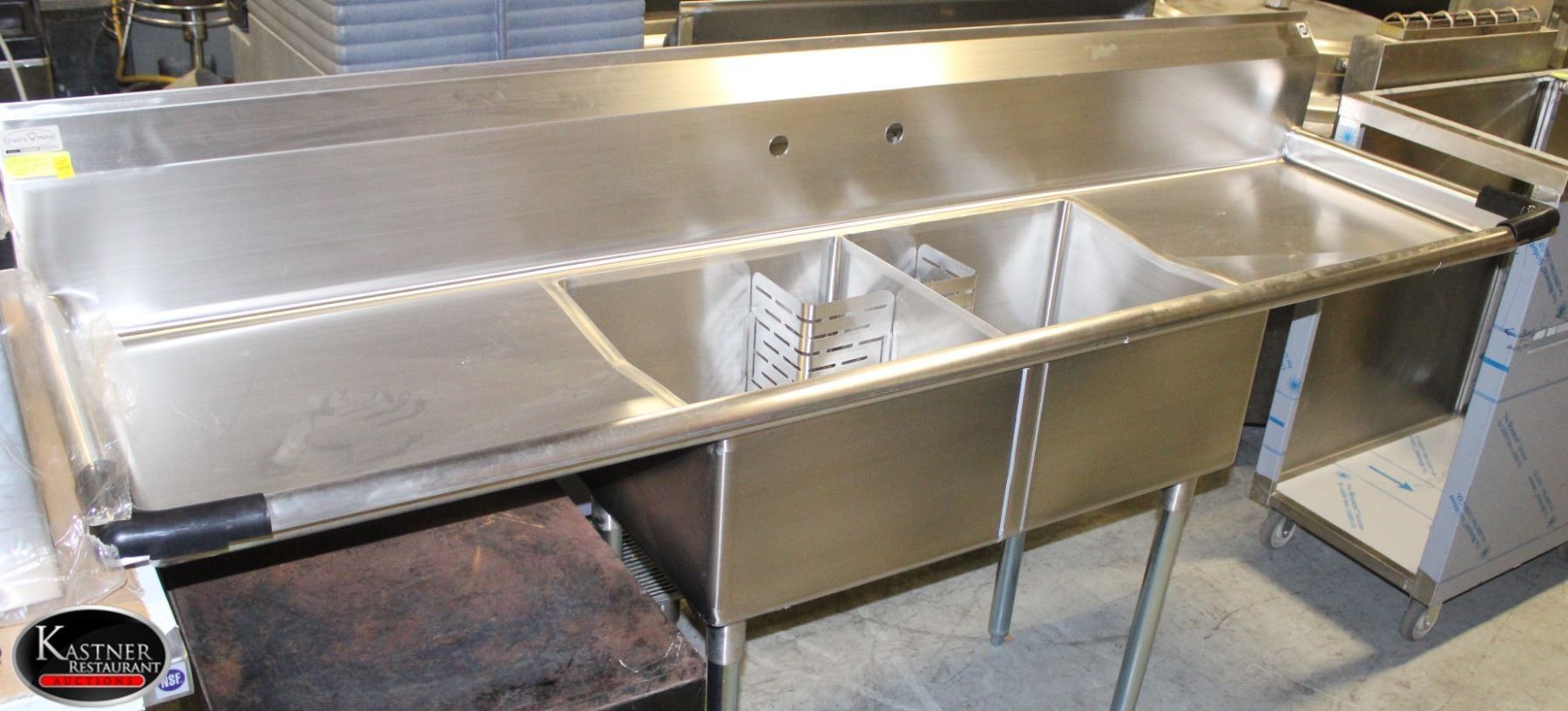 DRAIN BOARDS, WELLS MEASURE 18" X 18" X 11" DRAIN BOARDS MEASURE 25" LEFT 25" RIGHT TOTAL UNITS SIZE MEASURES 86" X 24" X 36