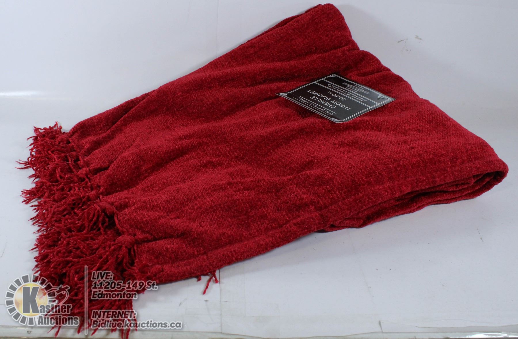 NEW CHENILLE THROW BLANKET 50"X60" RED POLYESTER