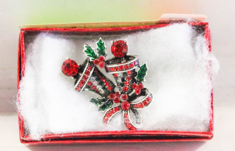 NEW CHRISTMAS BELLS BROOCH FILLED WITH