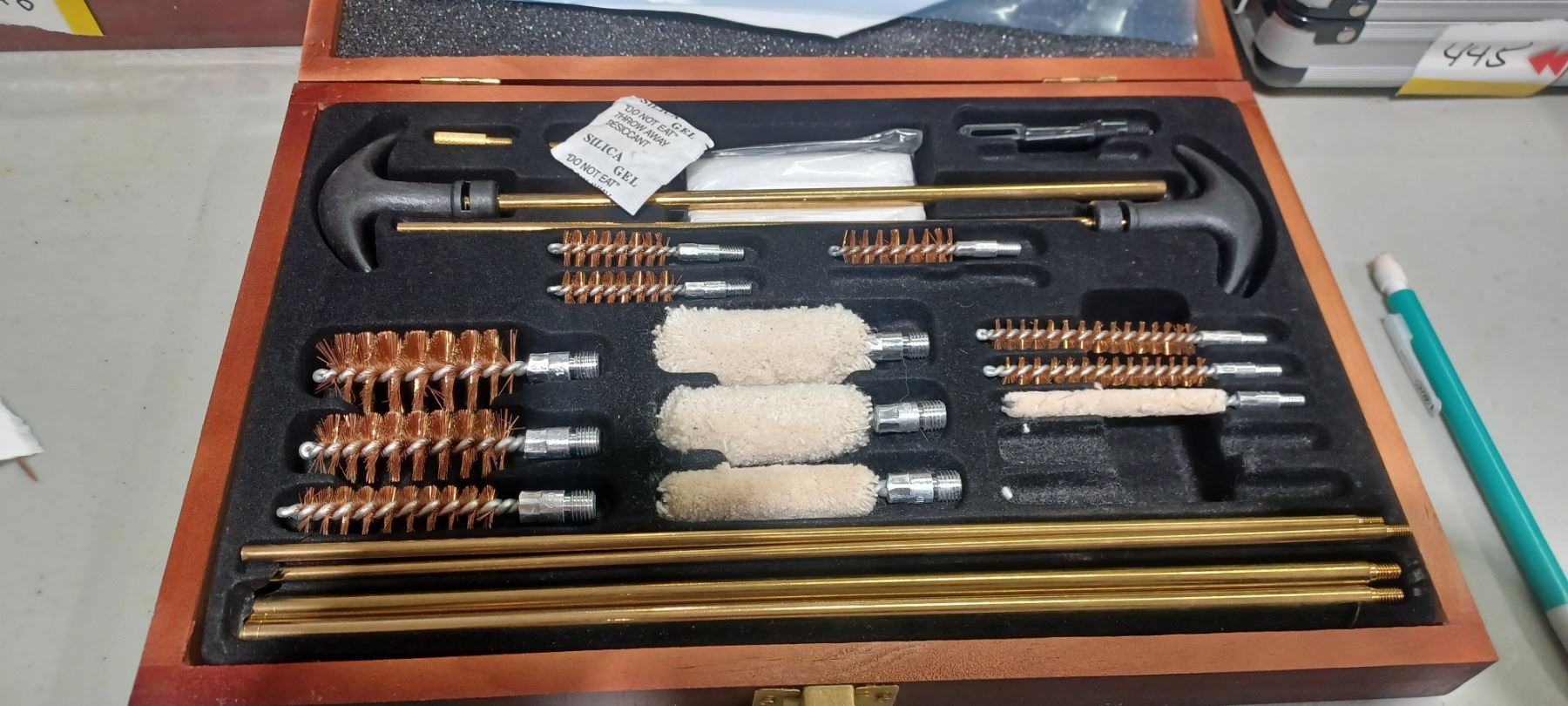 NEW CLEANING KIT 22. CAL TO 12GA C/W WOOD BOX