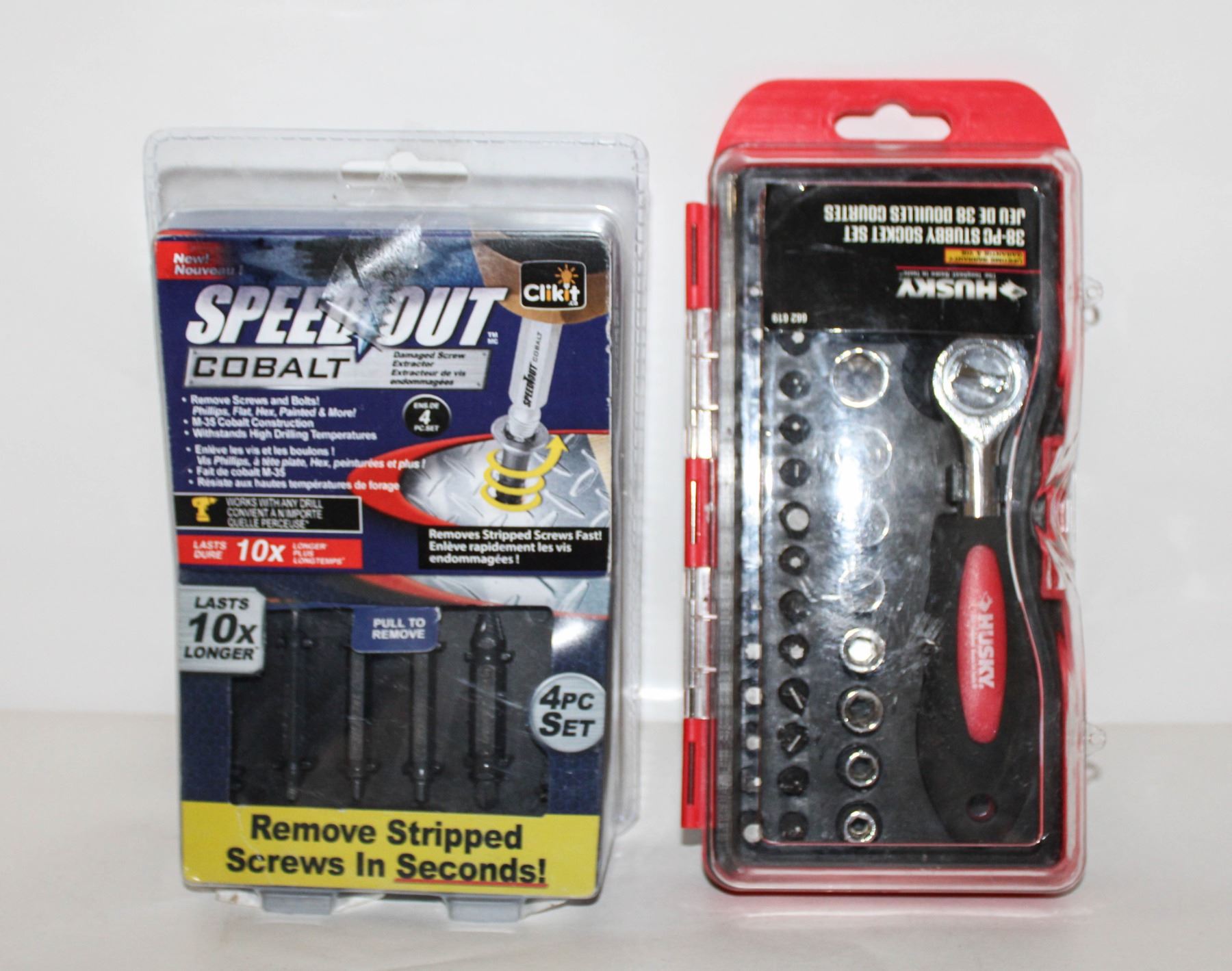 SCREW EXTRACTOR 4-PC W/HUSKY 38PC STUBBY SOCKET SET (UNUSED) **ALL ITEMS MUST BE REMOVED BY 5PM SATURDAY, MARCH 8TH 2025. ALL REMAINING ITEMS WILL BE SUBJECT TO A $6.00 PER DAY STORAGE CHARGE. ANY ITEMS REMAINING AFTER MONDAY, MARCH 24TH 2025 WILL BE CONSIDERED FORFEITED. NO REFUNDS WILL BE ISSUED FOR FORFEITED ITEMS. TO SCHEDULE A PICK UP APPOINTMENT CLICK HERE