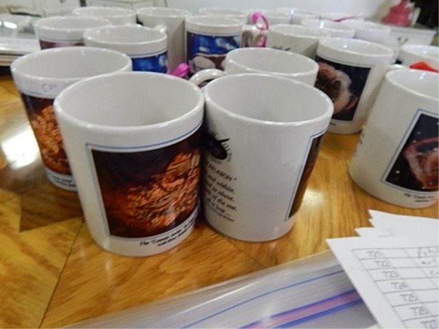 NEW COFFEE MUGS - ART BY EUGENE PENTZ - 4 MUGS PER LOT - 4 X ODYSSEY BY CAMOUFLAGE - PURPLE RIBBON