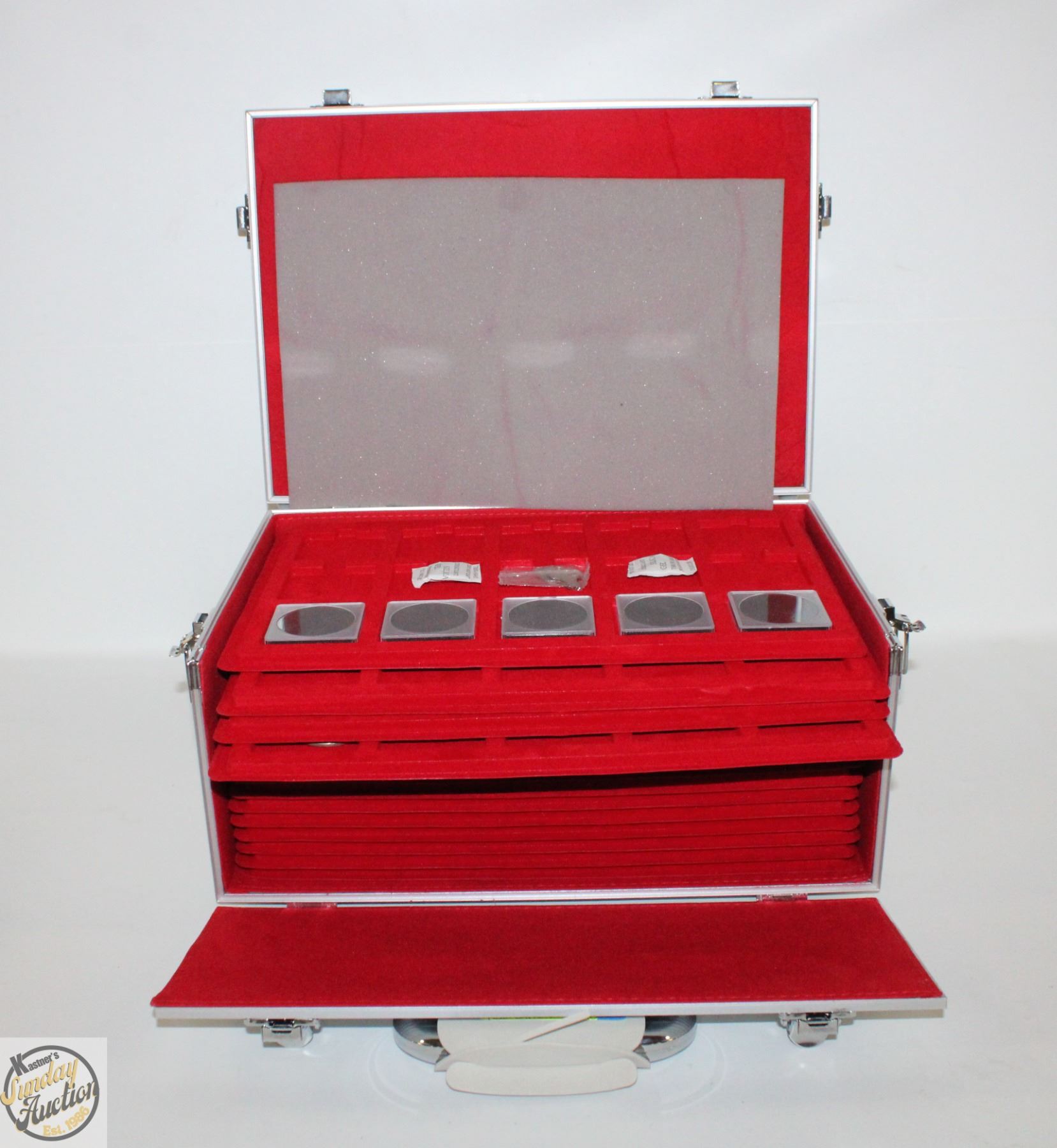 NEW LUXURY STRONG ALUMINIUM 15 TRAY COIN BOX FOR 225 PCS CINS. 2x2INCH SLOT SIZE. COMES WITH KEYS,5 PCS 2X2 CAPSULES AND 90 PCS INTERNATIONAL COINS. **ALL ITEMS MUST BE REMOVED BY 5PM SATURDAY, AUGUST 23RD 2025. ALL REMAINING ITEMS WILL BE SUBJECT TO A $6.00 PER DAY STORAGE CHARGE. ANY ITEMS REMAINING AFTER MONDAY, SEPTEMBER 8TH 2025 WILL BE CONSIDERED FORFEITED. NO REFUNDS WILL BE ISSUED FOR FORFEITED ITEMS. TO SCHEDULE A PICK UP APPOINTMENT CLICK HERE