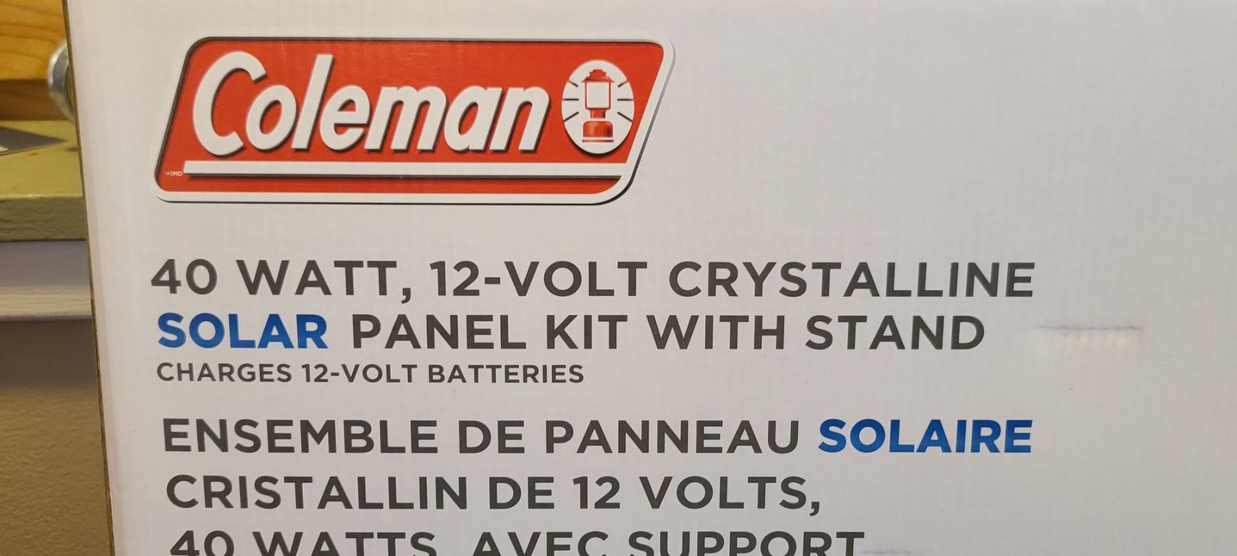 NEW COLEMAN 40 WATT 12VOLT SOLAR POWER KIT WITH STAND