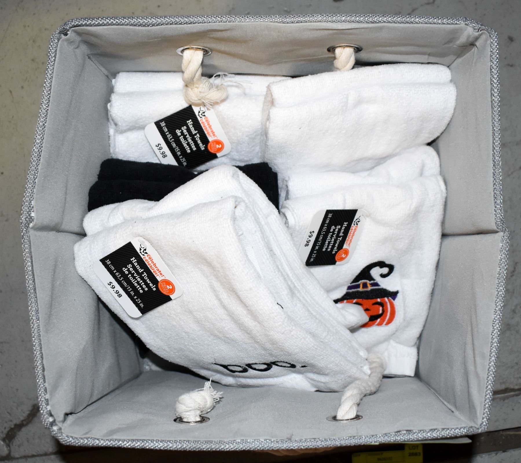 NEW COLLAPSIBLE TOTE W/ NEW HALLOWEEN HAND TOWELS