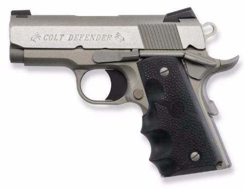 FAMILY:1911 Style Pistol Series MODEL:Defender TYPE:Semi-Auto Pistol ACTION:Single Action FINISH:Stainless STOCK/FRAME:Alloy Frame STOCK/GRIPS:Black Rubber CALIBER/GAUGE:45 ACP CAPACITY:7+1 # OF MAGS:2 BARREL:3" OVERALL LENGTH:6.75" SIGHTS:White Dot Carry ADDL INFO:Wrap Around Rubber Grip ADDL INFO:Teflon Coated Receiver