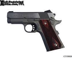 Manufacturer: Colt's Manufacturing Model: Defender Action: Semi-automatic Type: 1911 Size: Compact Wt Characteristic: Lightweight Caliber: 45 ACP Barrel Length: 3" Frame/Material: Alloy Finish/Color: Brushed Stainless Grips/Stock: Slim Profile Wood Grips Capacity: 7Rd Accessories: 2 Mags Sights: Fixed Sights