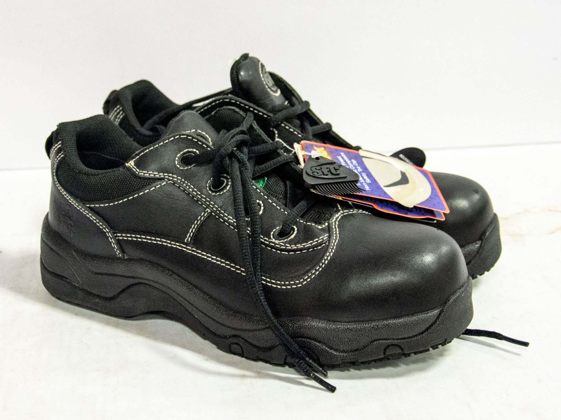 SAFETY TOE CAP WORK SHOES - PUNCTURE RESISTANT, FUEL/OIL RESISTANT, LIGHT WEIGHT, PROFESSIONAL GRADE, EH RATED AND SA APPROVED - MEN'S SIZE 7.5 / WOMEN'S SIZE 9