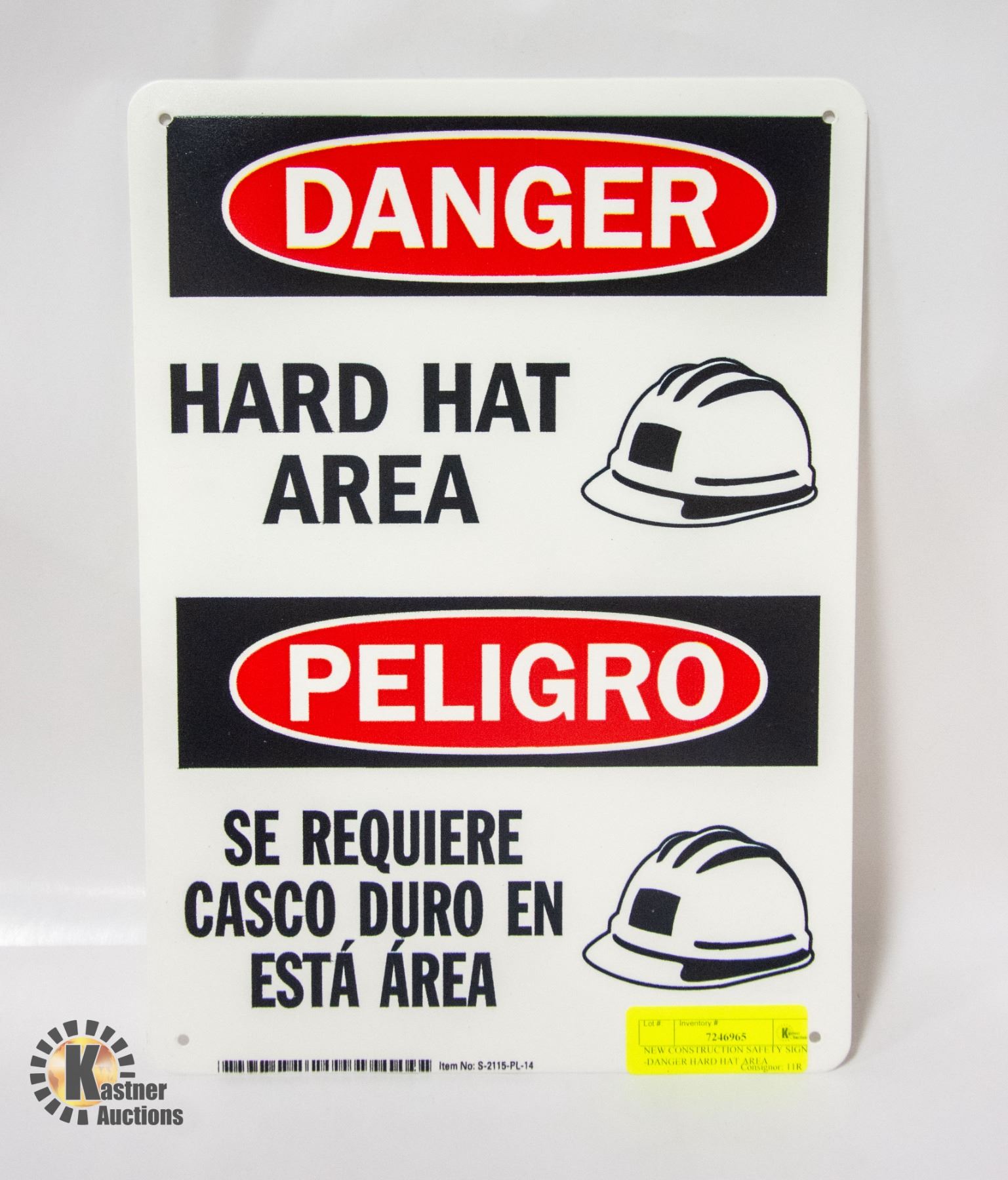 NEW CONSTRUCTION SAFETY SIGN -DANGER HARD HAT AREA