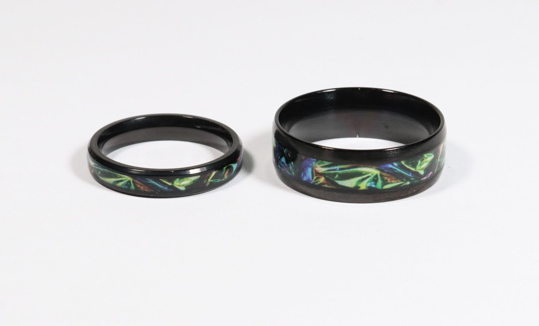 COVERED WITH ACRYLIC. FASHION JEWELRY, THIN BAND SIZE 8 THICK BAND SIZE 12, THE BANDS ARE SMOOTH