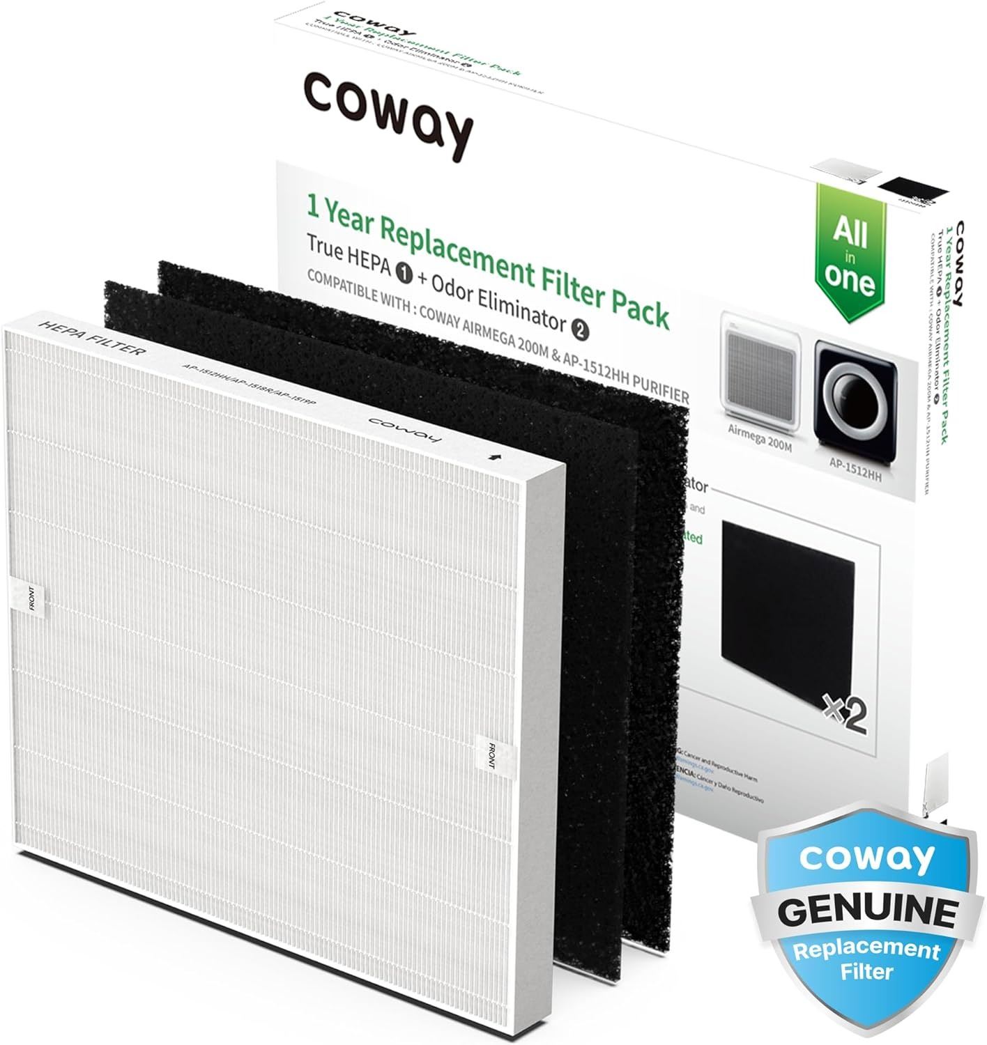 TRUE HEPA FILTER + ODOR ELIMINATOR FILTER, COMPATIBLE WITH COWAY AIRMEGA 200M & AP-1512HH PURIFIER, ALL IN ONE REPLACEMENT FILTER. AMZ SES