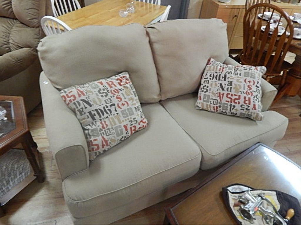 NEW CREAM BEIGE LOVE SEAT AND 2 ACCENT CUSIONS
