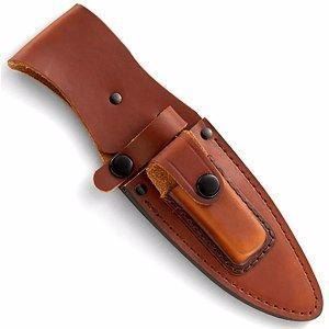 When it comes to survival of the fittest, you want a knife that can adapt. The HoodWork is a Karen Hood survival knife that is born and bred to keep you innovative and alive in the woods. It's a USA made, modified drop point blade with exclusive, patented Veff Serrations and a G10 handle that is comfortable and confident in hand. The HoodWork survival knife is crafted from a solid billet of 1095 high carbon steel that is sandblasted, then sealed with a clear Cerakote coating for durability in harsh conditions. An orange 550 paracord lanyard keeps the knife close at hand. The custom sheath is made in the USA from 6/7 oz. full grained leather. The leather is vegetable tanned and will not corrode metal. It is hand oiled for durability and beauty, then locked stitched with heavy weight nylon thread. The sheath fits belts with widths up to 2.5 inches. It includes a small pouch for carrying firesteel, tinder or other essentials. Features Blade Length: 6.13 inch Overall Length: 11.31 inch Blade Material: 1095 High Carbon Steel, 56-58 HRC Handle Material: G10 Weight: 9.2 oz. Features: Leather Sheath