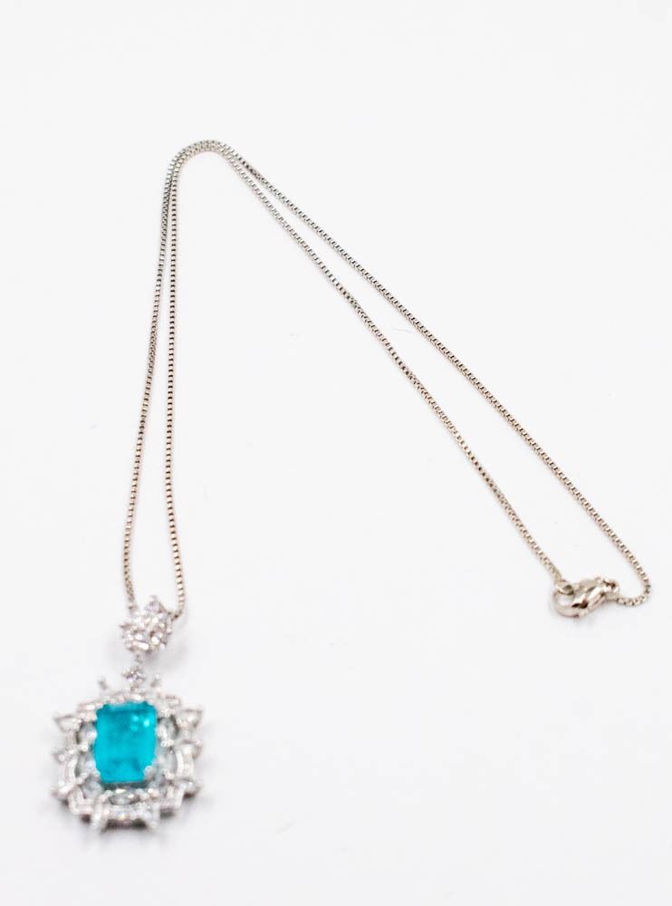 NEW, CUBIC ZIRCONIA BLUE GEM PENDANT/NECKLACE