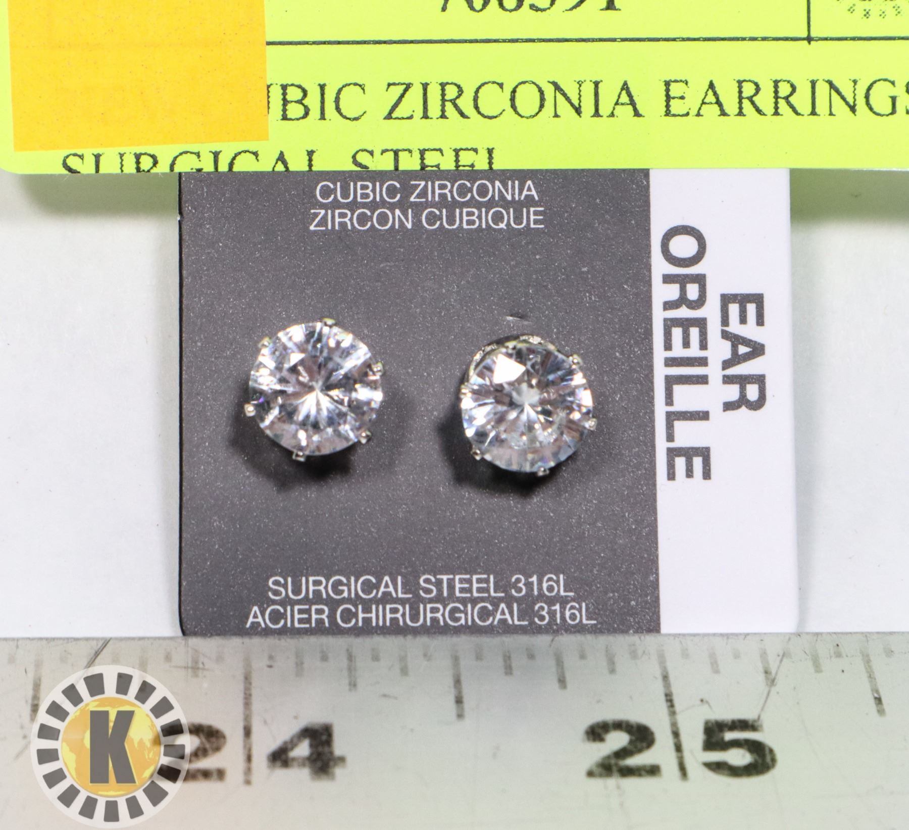 NEW CUBIC ZIRCONIA EARRINGS, SURGICAL STEEL