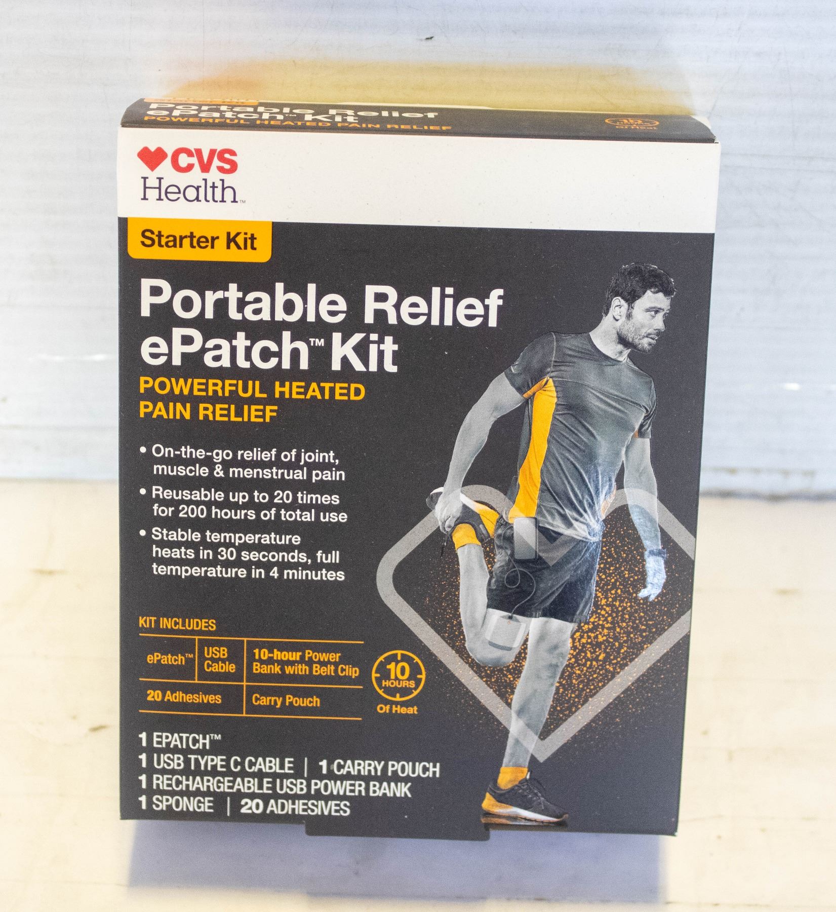 POWERFUL HEATED PAIN RELIEF INCLUDES E PATCH, USB TYPE C CABLE, CARRY POUCH, RECHARGABLE USB POWER BANK, SPONGE AND 20 ADHESIVES . **ALL ITEMS MUST BE REMOVED BY 5PM SATURDAY, JULY 20TH 2024. ALL REMAINING ITEMS WILL BE SUBJECT TO A $6.00 PER DAY STORAGE CHARGE. ANY ITEMS REMAINING AFTER MONDAY, AUGUST 5TH 2024 WILL BE CONSIDERED FORFEITED. NO REFUNDS WILL BE ISSUED FOR FORFEITED ITEMS. TO SCHEDULE A PICK UP APPOINTMENT CLICK HERE