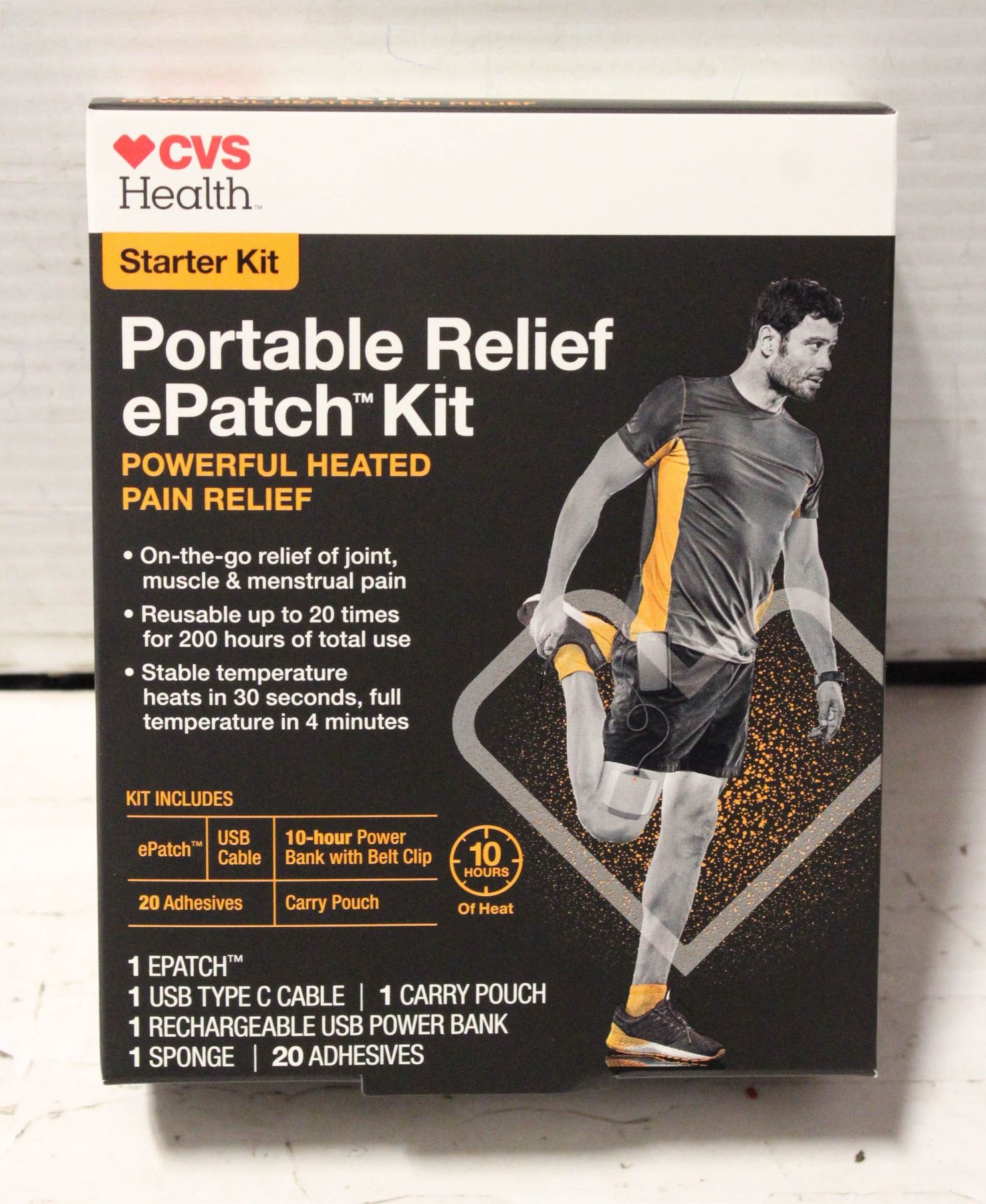 POWERFUL HEATED PAIN RELIEF INCLUDES E PATCH, USB TYPE C CABLE, CARRY POUCH, RECHARGABLE USB POWER BANK, SPONGE AND 20 ADHESIVES . **ALL ITEMS MUST BE REMOVED BY 5PM SATURDAY, DECEMBER 7TH 2024. ALL REMAINING ITEMS WILL BE SUBJECT TO A $6.00 PER DAY STORAGE CHARGE. ANY ITEMS REMAINING AFTER MONDAY, DECEMBER 23RD 2024 WILL BE CONSIDERED FORFEITED. NO REFUNDS WILL BE ISSUED FOR FORFEITED ITEMS. TO SCHEDULE A PICK UP APPOINTMENT CLICK HERE