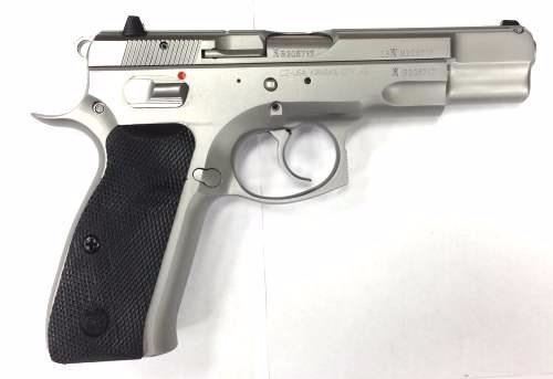 FAMILY:75 Series MODEL:CZ 75B TYPE:Semi-Auto Pistol ACTION:Double / Single Action FINISH:Matte Stainless STOCK/FRAME:Steel Frame STOCK/GRIPS:Black Synthetic CALIBER/GAUGE:9mm CAPACITY:16+1 BARREL:4.7" OVERALL LENGTH:8.1" RATE-OF-TWIST:1-in-9.7 SIGHTS:Fixed ADDL INFO:Manual Safety ADDL INFO:Safety Stop On Hammer