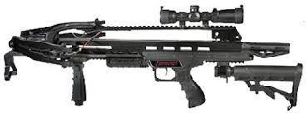 Mfr Items:Carbon Express Category:ARCHERY AND ACCESSORIES Type:Crossbow Model:Intercept Length:29" Weight:8 lbs Draw Weight:185 lbs Arrow Length:17" Color:Black Misc:Quiver Quantity:3 Pack of Arrows Magnification:4x FPS:360 Scope Type:Illuminated