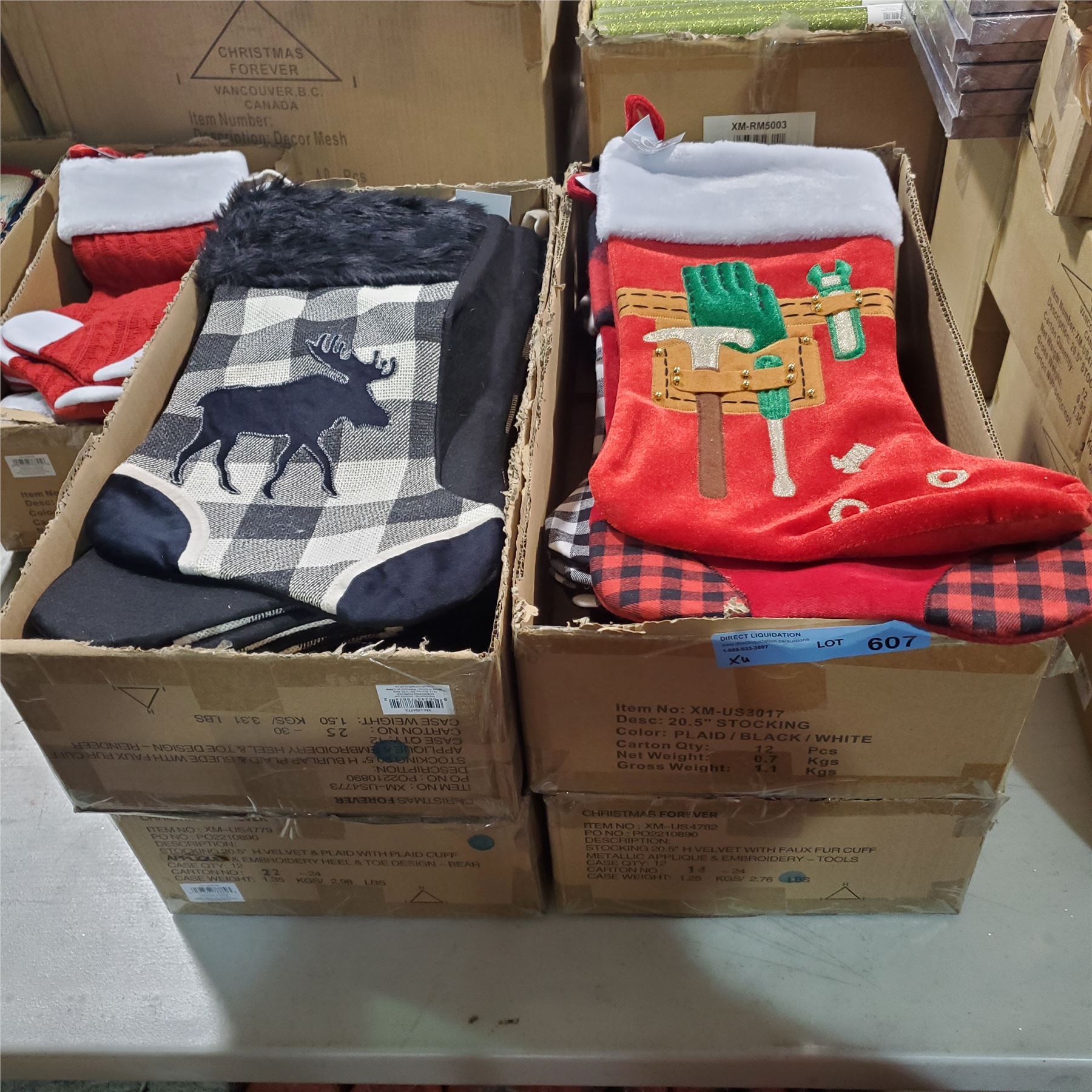 NEW Christmas Assorted Decorative 20" Socking - includes 4 Boxes of approx. 12 pcs each