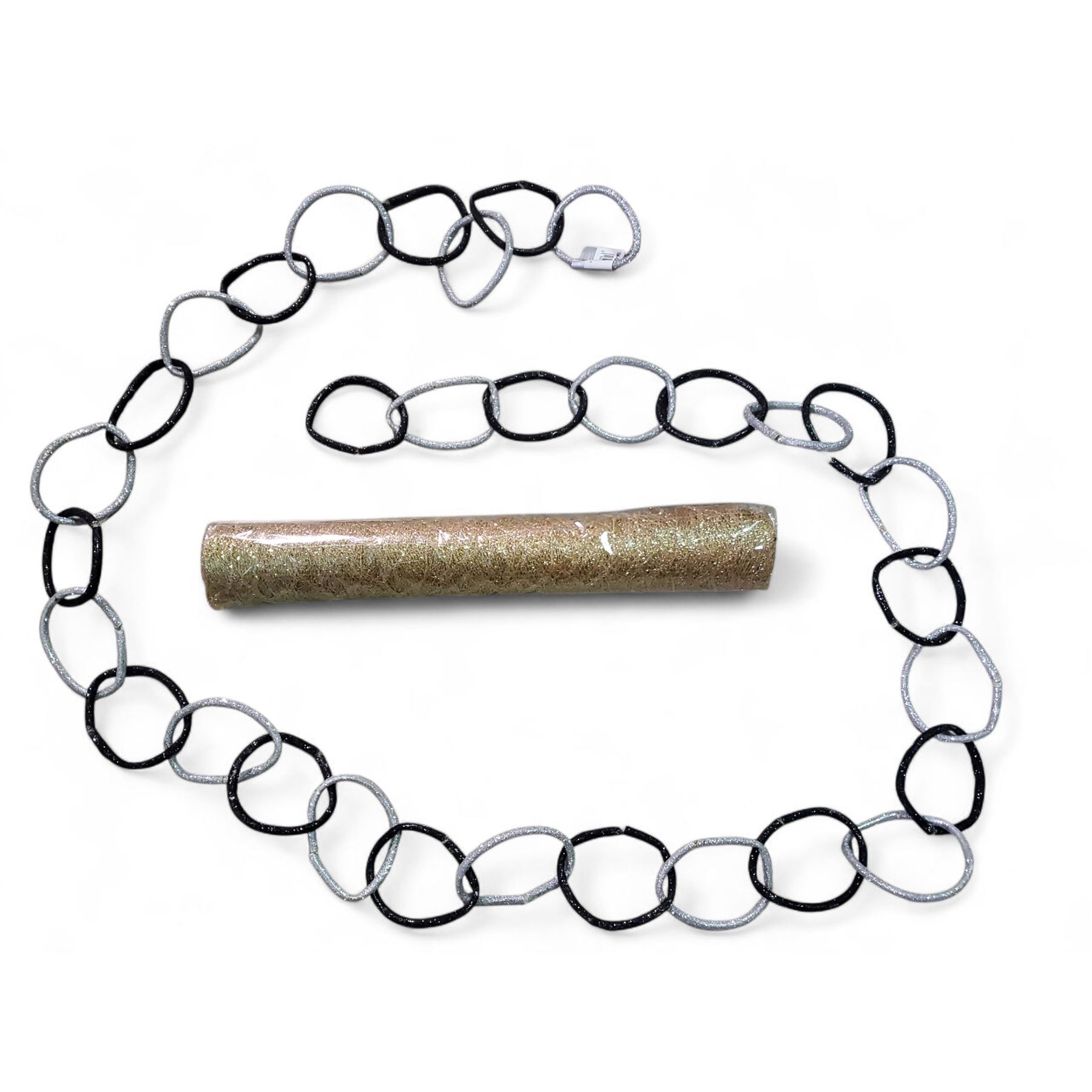 NEW Christmas Deco - includes 2 Boxes of Glitter Ring Garlands Set (72 pcs each) & 1 Box of Gold Mesh (48 pcs)