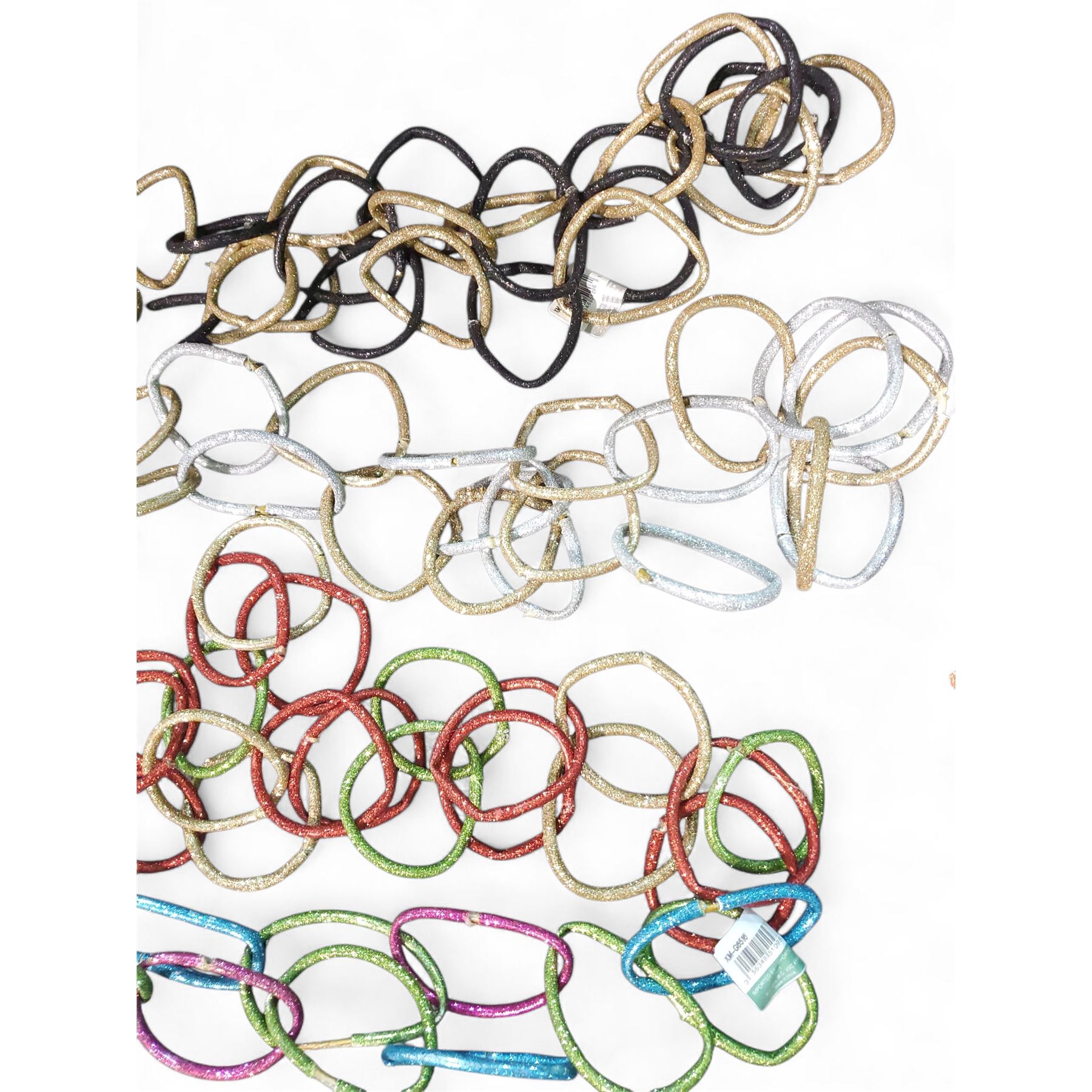 NEW Christmas Deco - includes 4 Boxes of Assorted Glitter Ring Garlands (approx. 48 pcs) & 1 Box of Bows & Christmas Tree Skirts