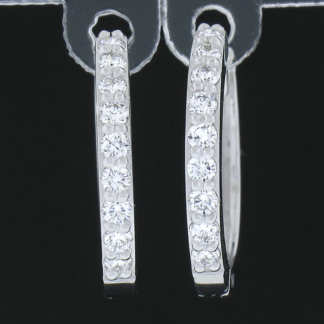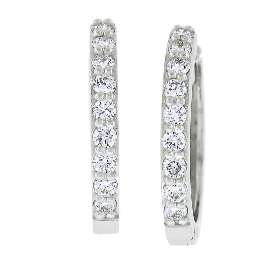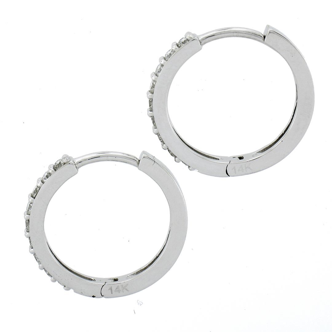 A new solid 14k white gold hoop earrings, with 18 round cut natural diamonds (F/G - VS1/VS2 ; 0.32ctw). The earrings measure approximately 15.6x2mm and weigh a total of 2.49 grams.