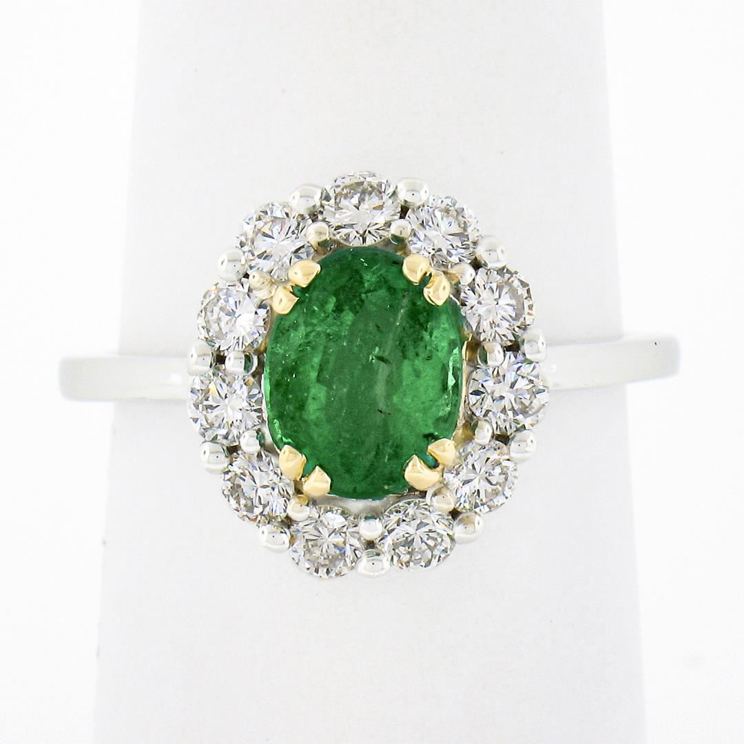 NEW Classic 18K TT Gold 2.11 ctw Oval Emerald Solitaire w/ Round Diamond Halo Ri