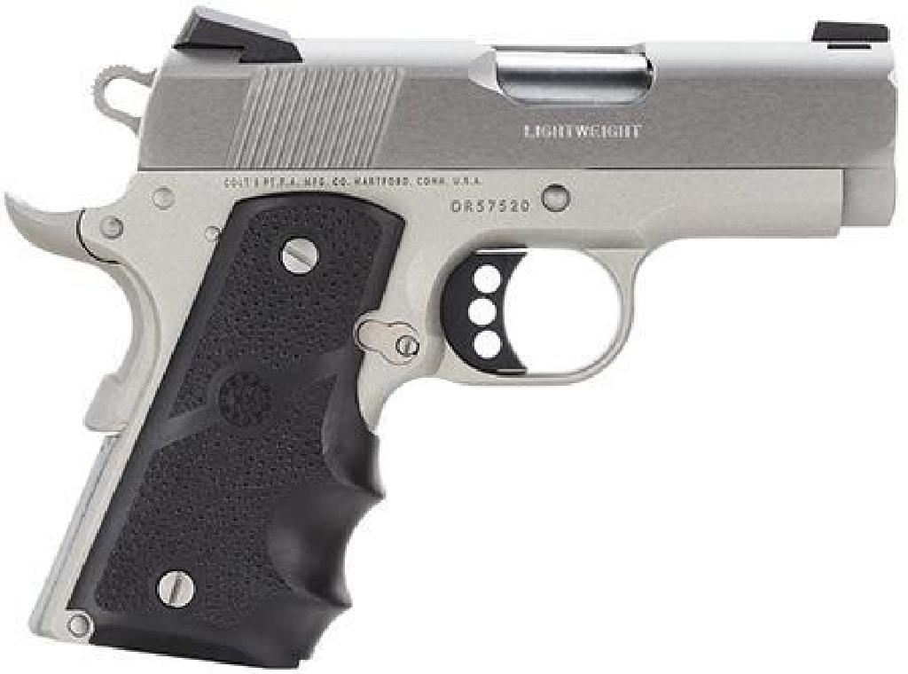 Specifications Frame Finish:Stainless Type:Pistol Action:Single Caliber:45 Automatic Colt Pistol (ACP) Barrel Length:3.0" Capacity:7+1 Safety:Manual Thumb/Grip Grips:Black Hogue Wraparound Sights:White Dot Carry Weight:24 oz Frame Material:Aluminum Alloy Slide Description:Stainless Steel Case Type:Hard