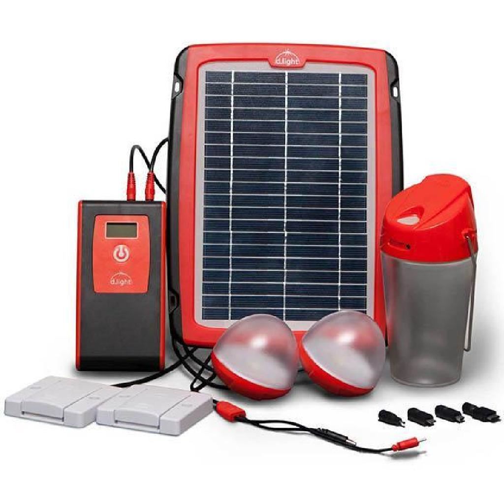 The D20 is d.light's newest solar lighting system, full of features such as multiple lights, cell phone charging and a separate solar panel. Features Two LED lamps with high and low settings and independent wall switches One portable lantern with a two-mode high/low push button switch USB with mobile phone charging Simple set up and operation, simply plug in and enjoy No battery replacement ever needed Dual charging; either solar panel or USB Two-year product warranty