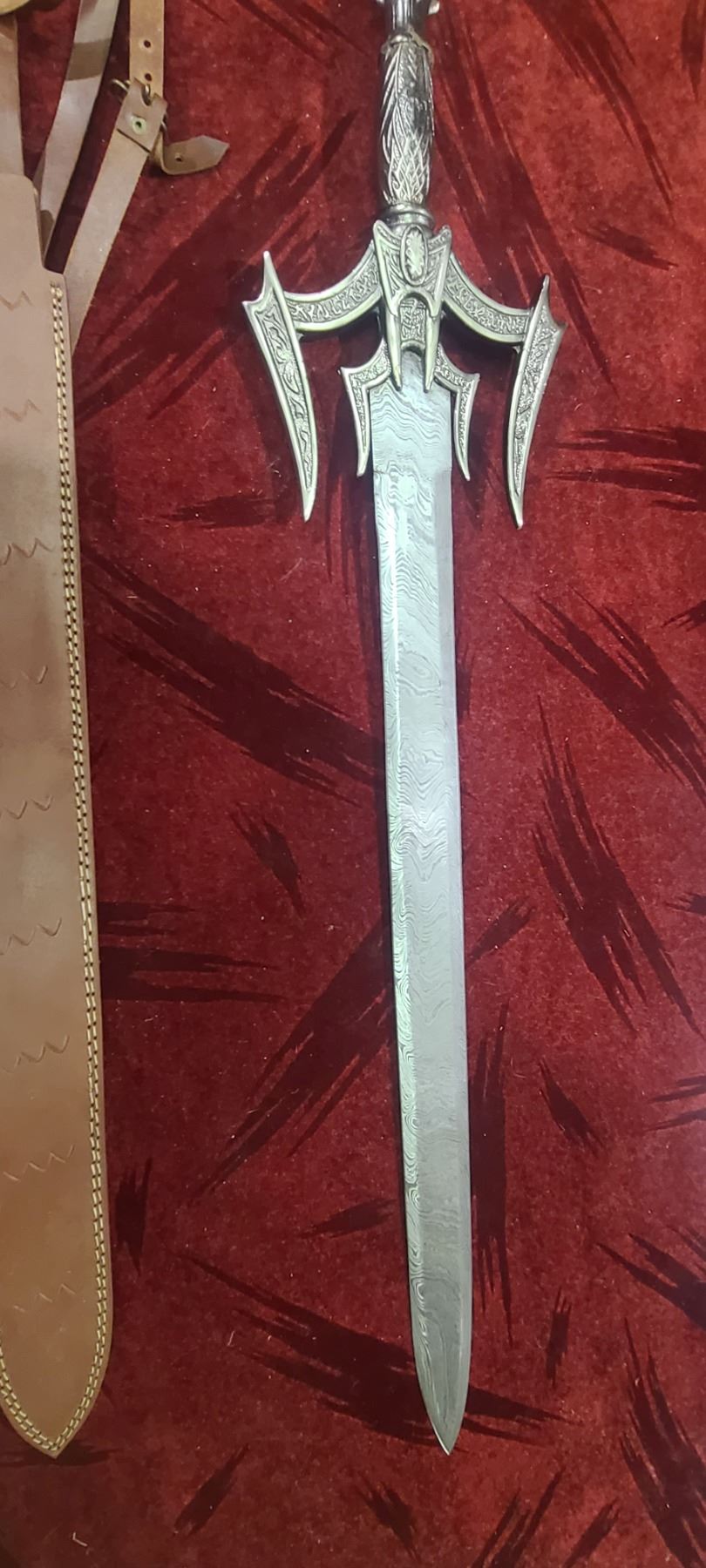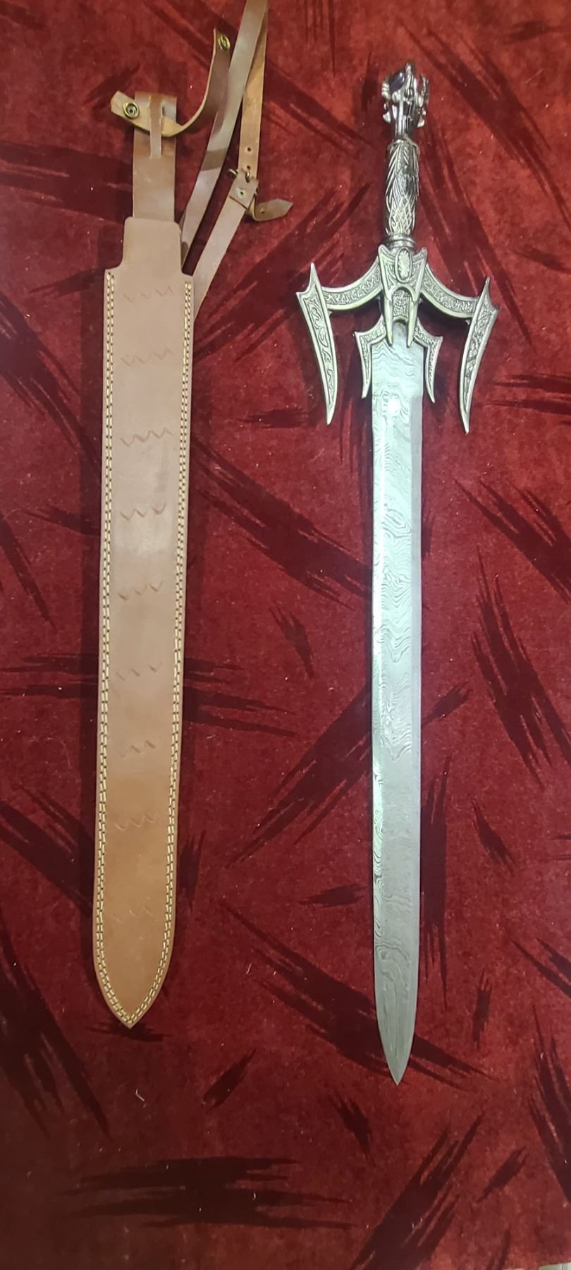 NEW DAMASCUS STEEL 36 INCH SWORD WITH LEATHER SHEATH