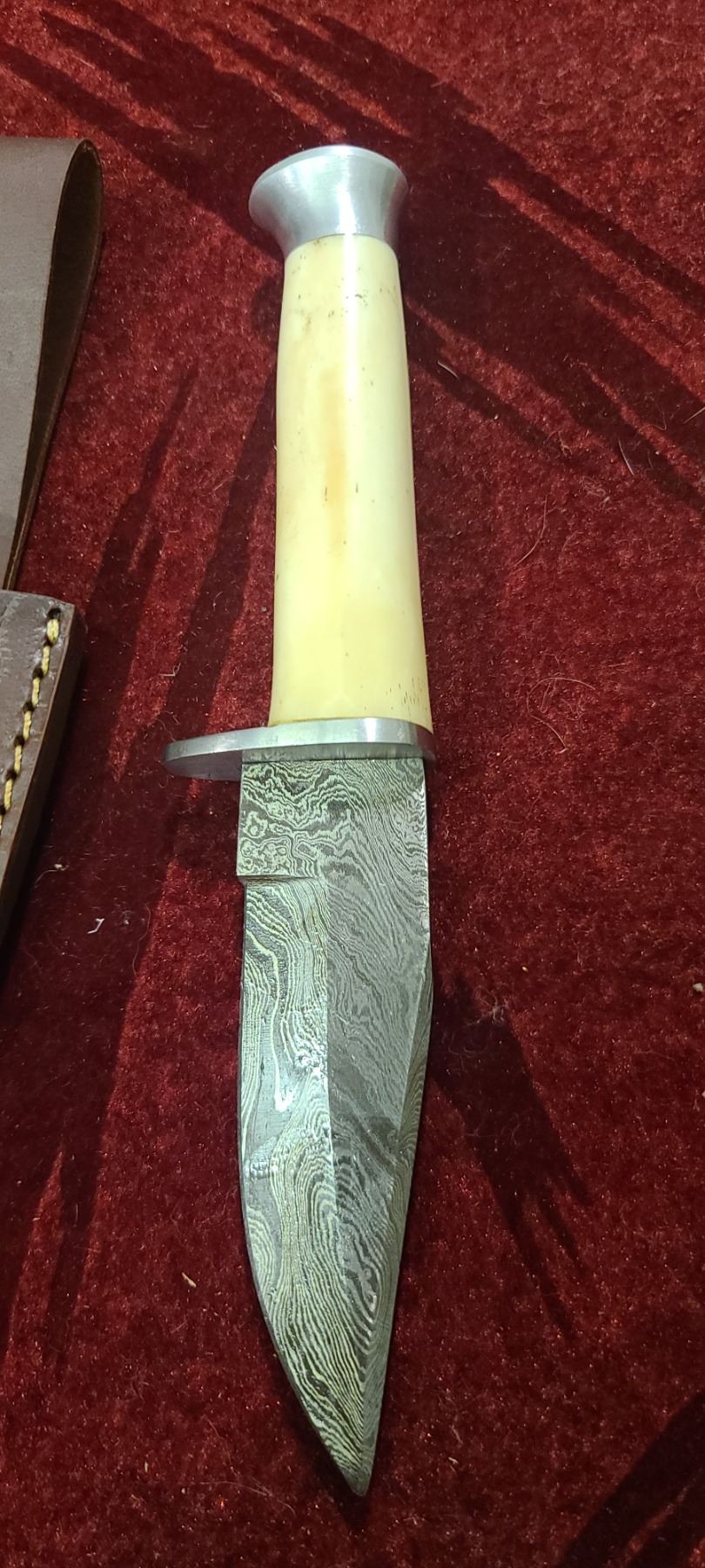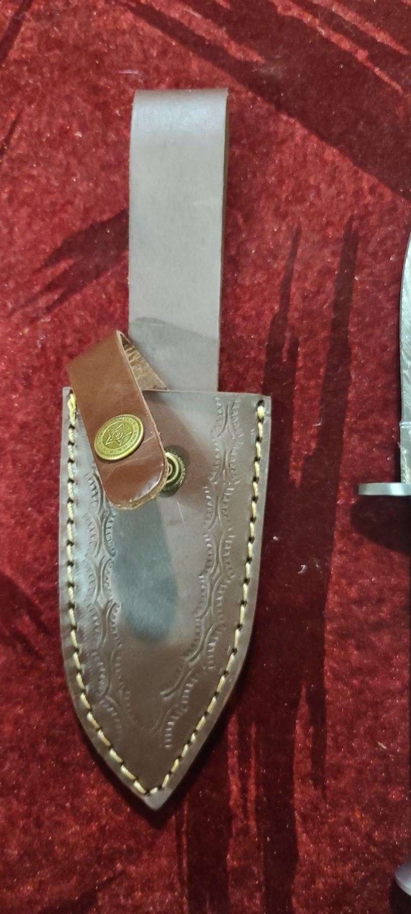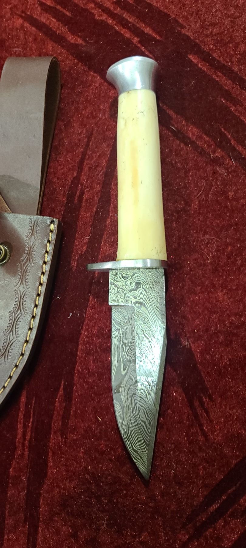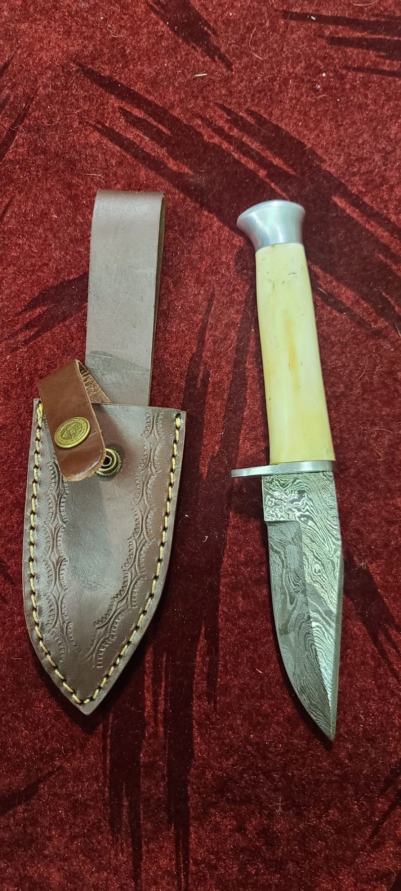 NEW DAMASCUS STEEL HUNTING KNIFE WITH LEATHER SHEATH 5" BLADE