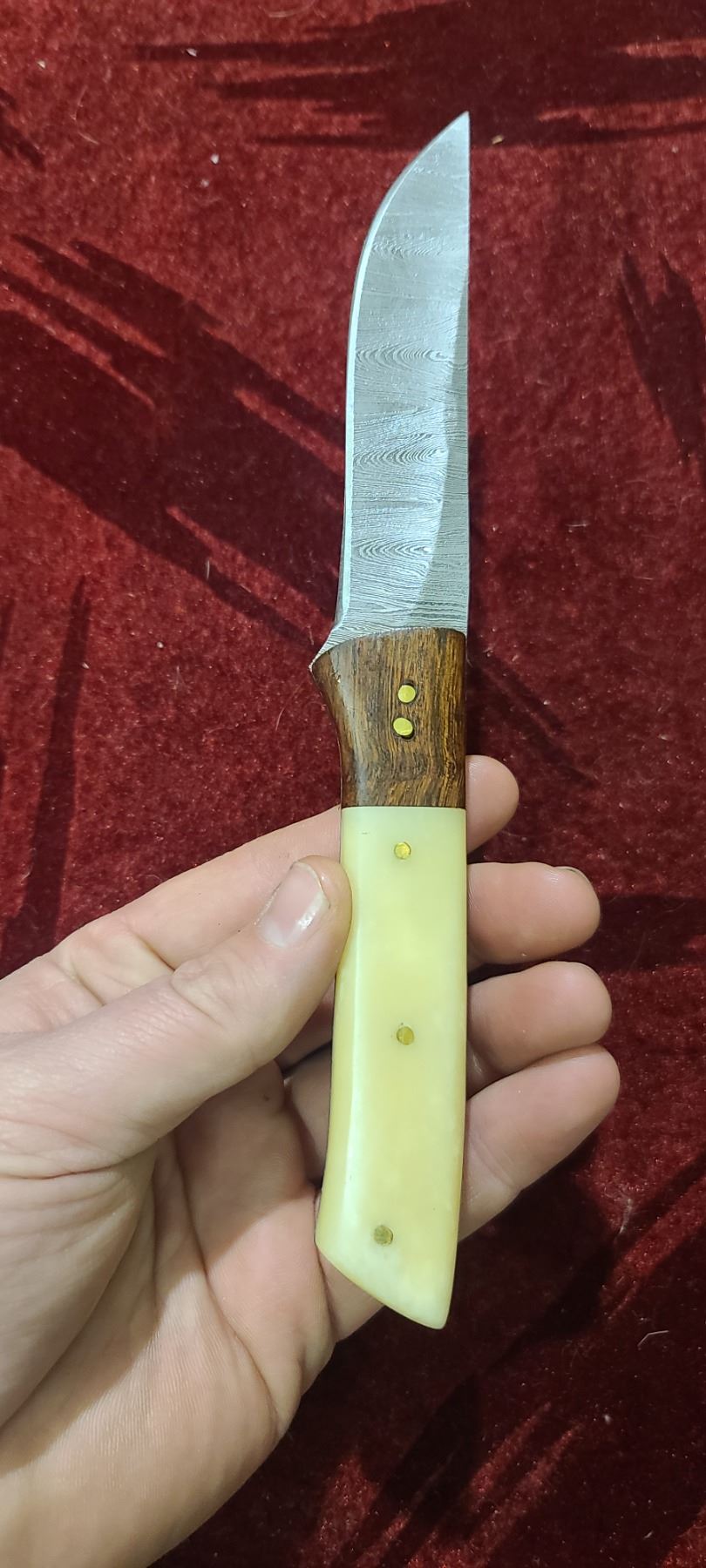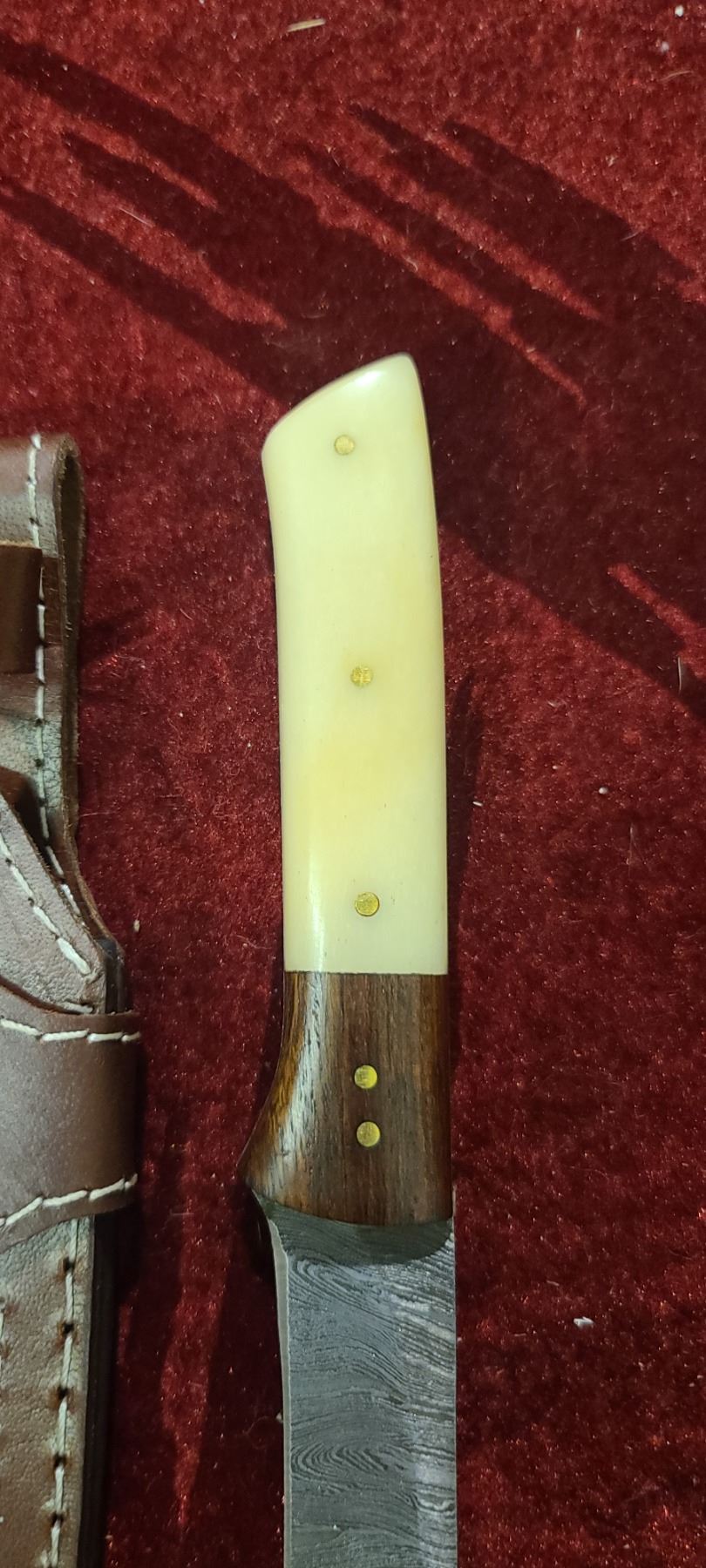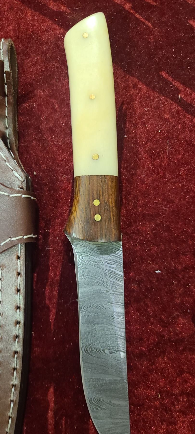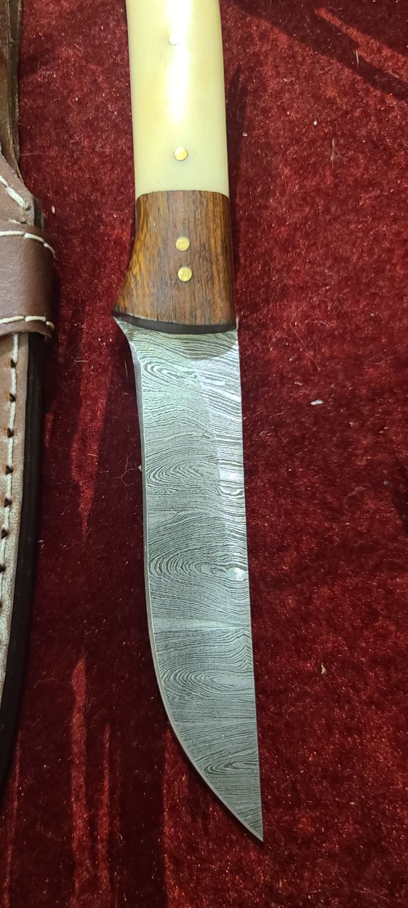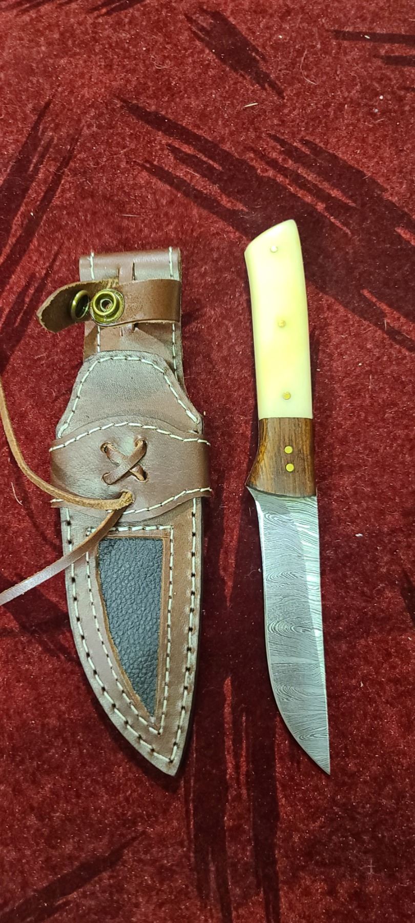 NEW DAMASCUS STEEL HUNTING KNIFE WITH LEATHER SHEATH 5" BLADE