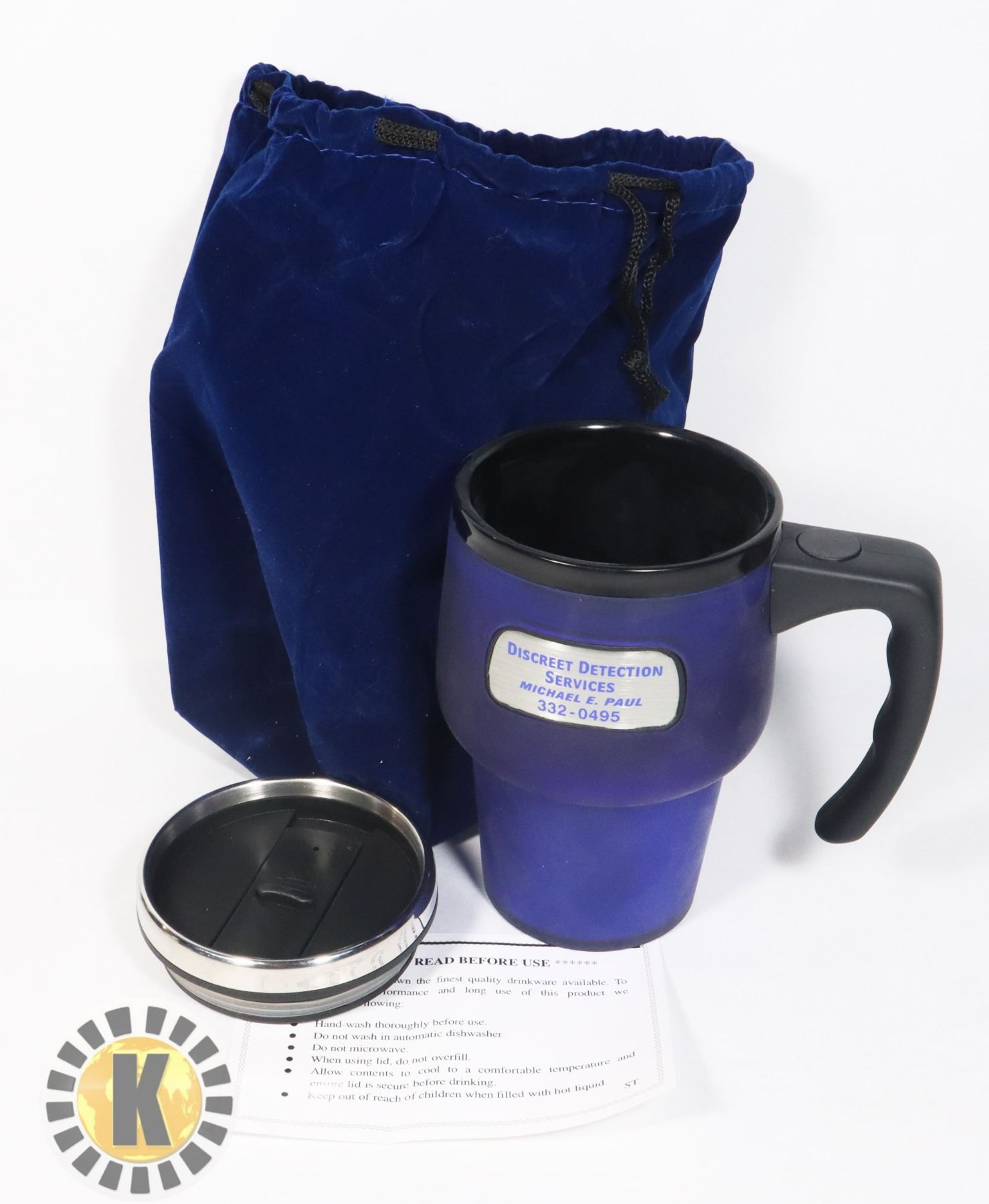 THERMAL MUG WITH POUCH. NEW ITEM, STORE RELOCATION INVENTORY CLEAROUT