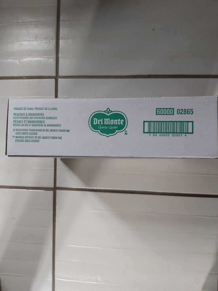 NEW DEL MONTE PEACHES & MANDARINS 6 X 4 X 112ML CASE MADE IN CANADA 2021 DE 19 L358