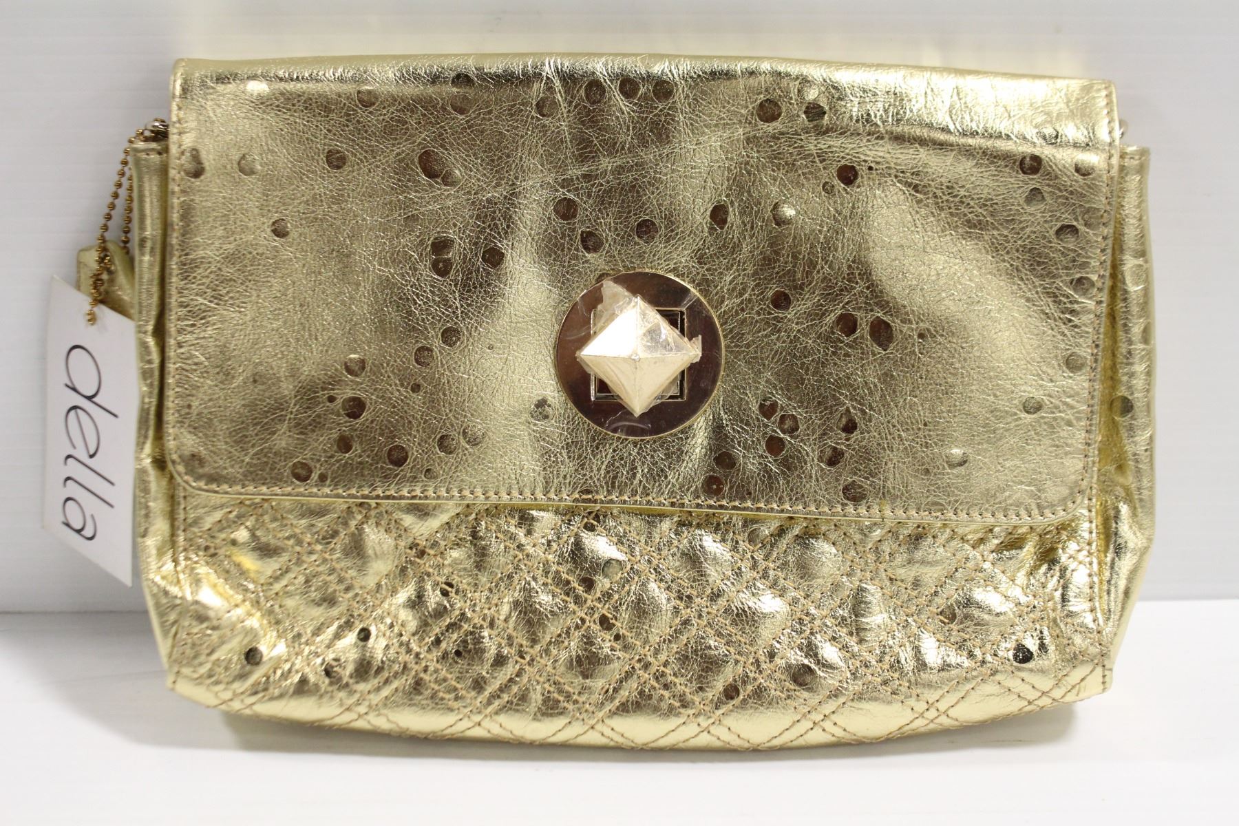 NEW DELLA LEATHER ELISE ENCORE CLUTCH, GOLD COLOR