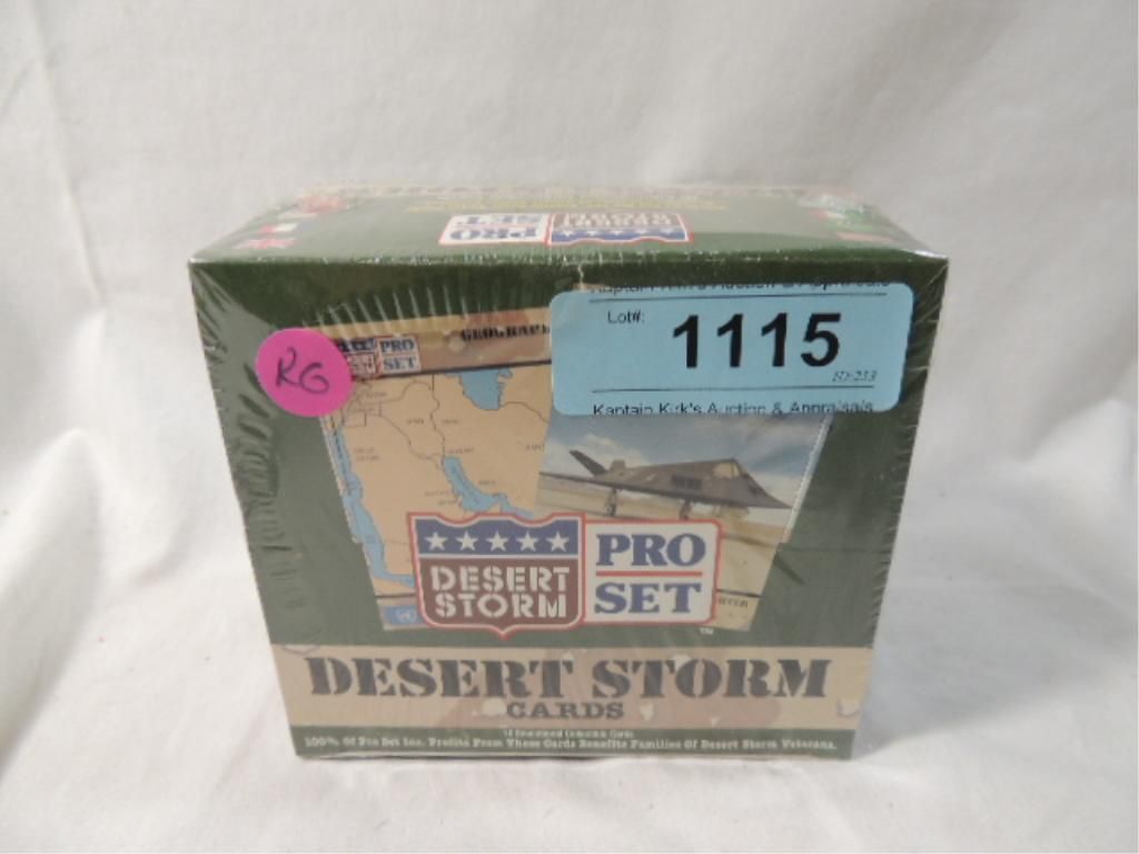 NEW SEALED BOX. DESERT STORM EDUCATIONAL COLLECTIBLE CARDS. GEOGRAPHY. MILITARY SKILLS. LEADERS. INTELLIGENCE FILES. PERSONNEL. GOVERMENTS. MILITARY ASSETS