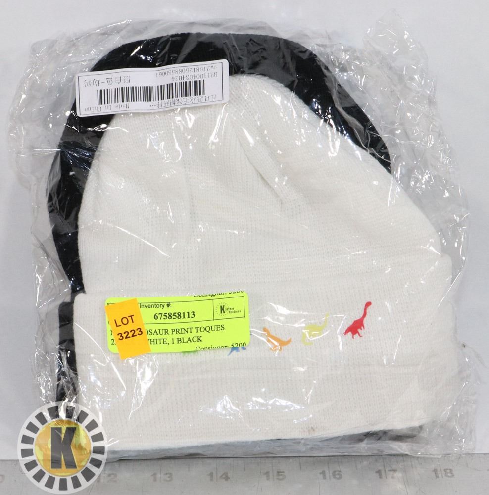NEW DINOSAUR PRINT TOQUES 2PACK 1 WHITE, 1 BLACK