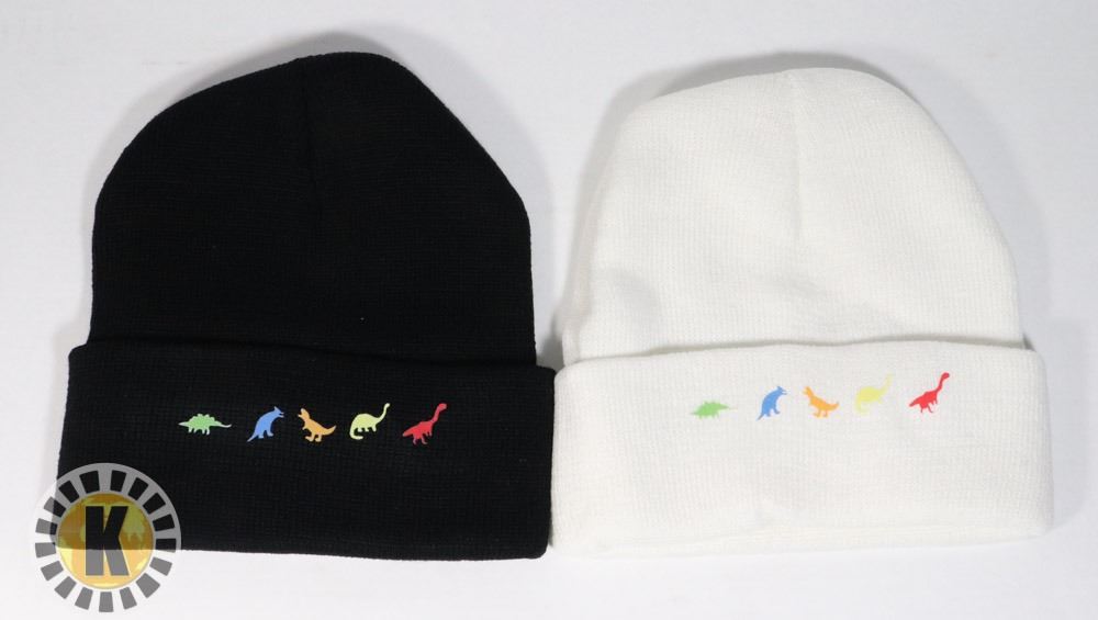 NEW DINOSAUR PRINT TOQUES 2PACK 1 WHITE, 1 BLACK