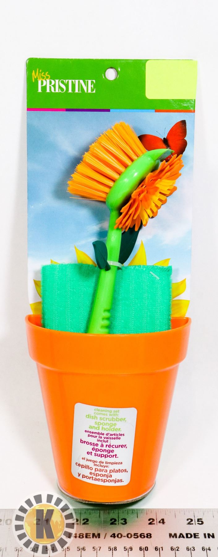 NEW DISH SCRUBBER, SPONGE AND HOLDER ORANGE